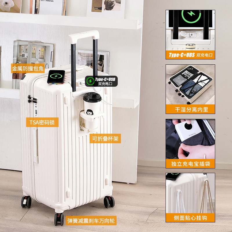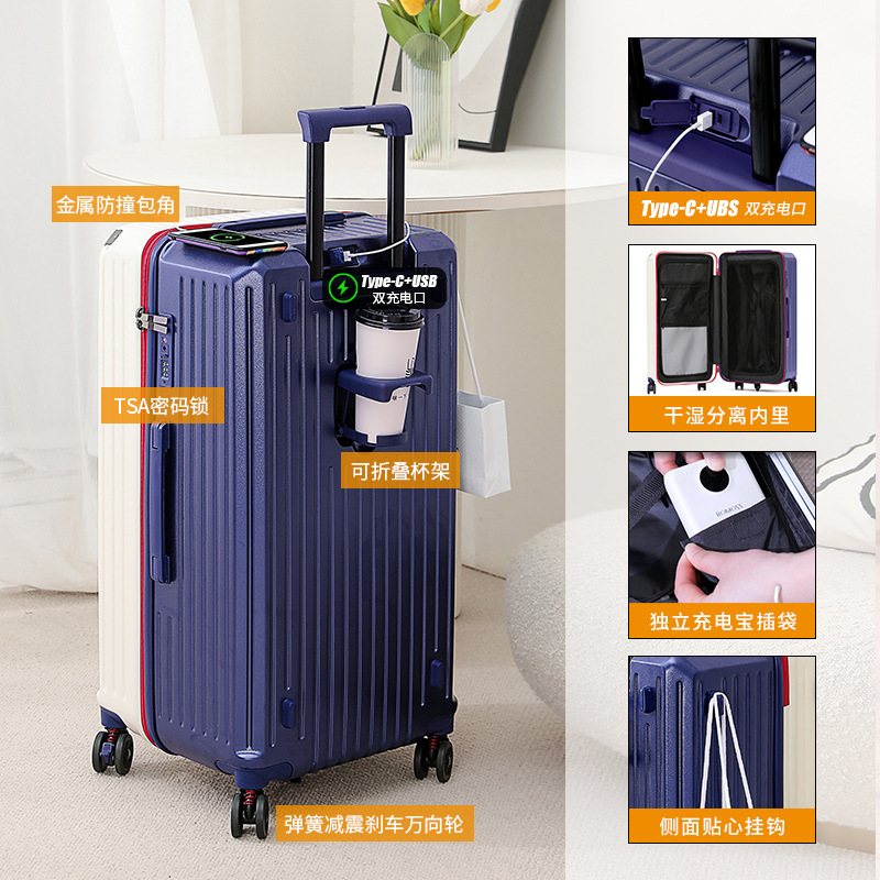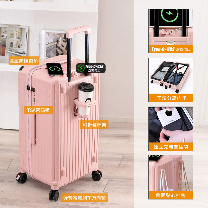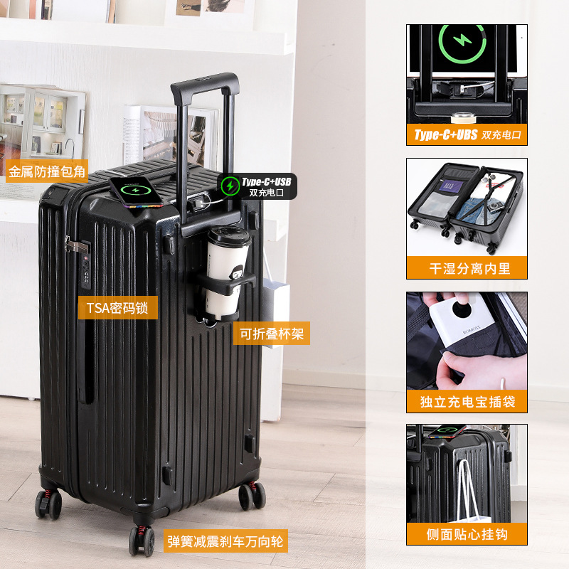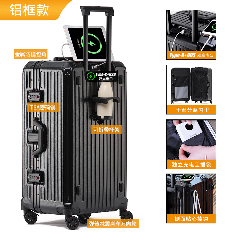 严选优品充电多功能拉杆箱大容量28寸行李箱女刹车万向轮密码旅行