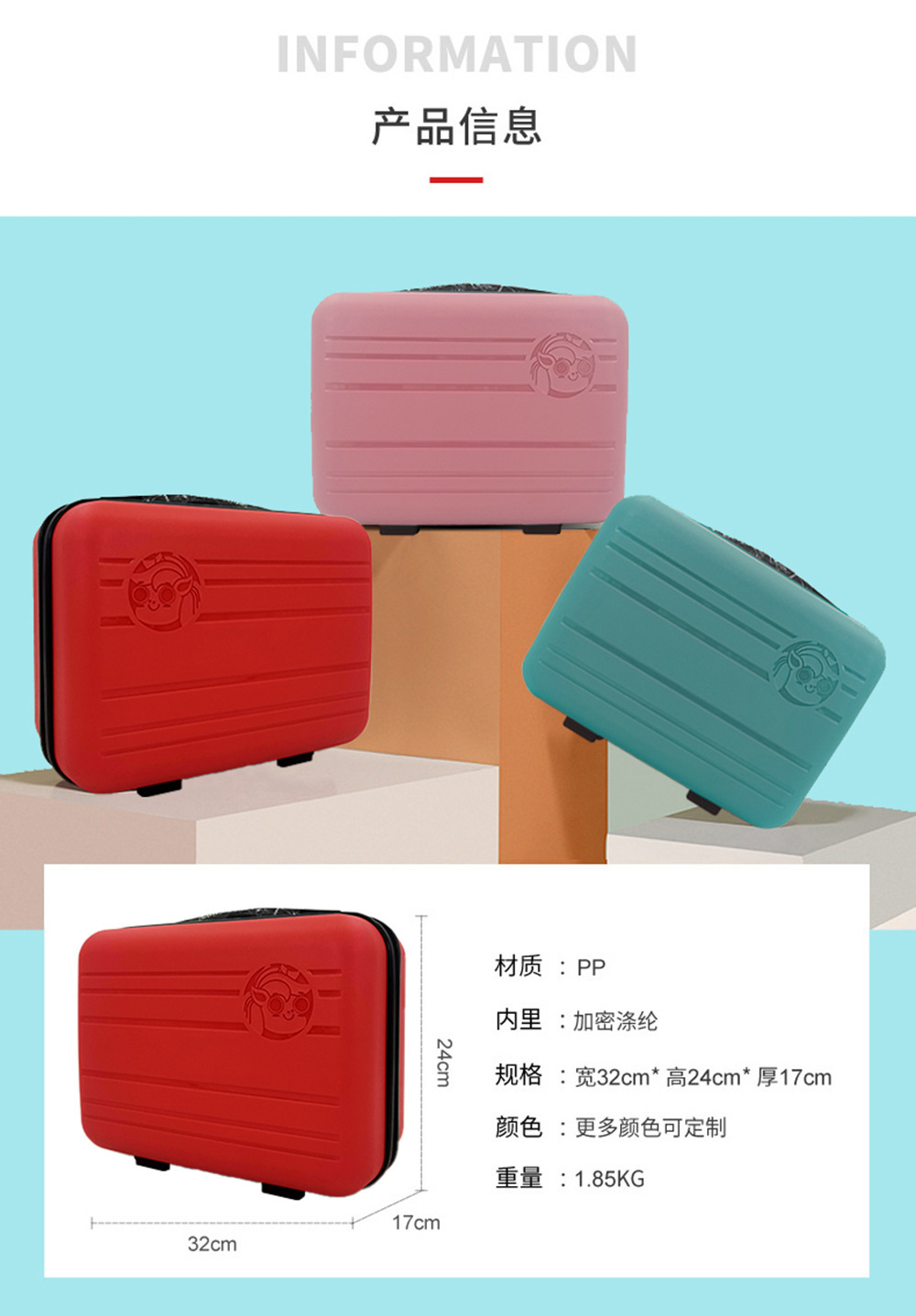 韩版14寸手提箱PP化妆箱子mini收纳旅行箱定制logo化妆包礼品箱包