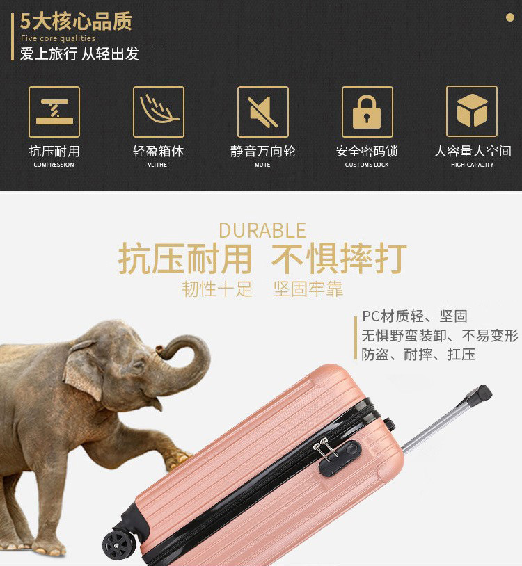 厂家批发20寸行李箱大容量密码锁拉杆箱可印logo纯色万向轮旅行箱