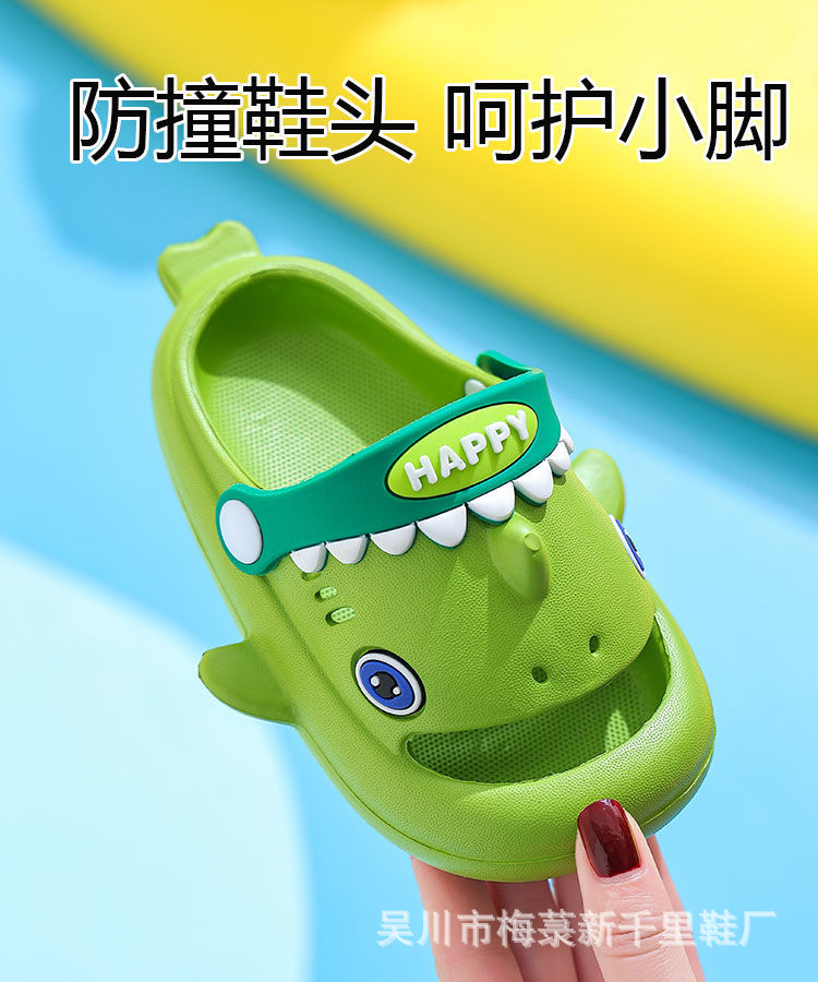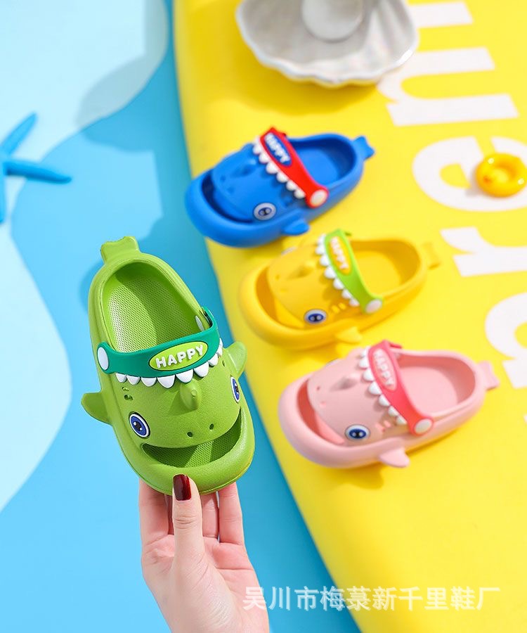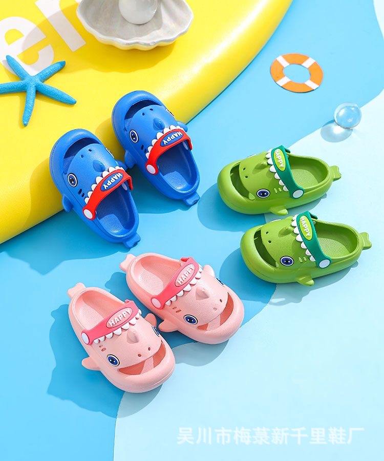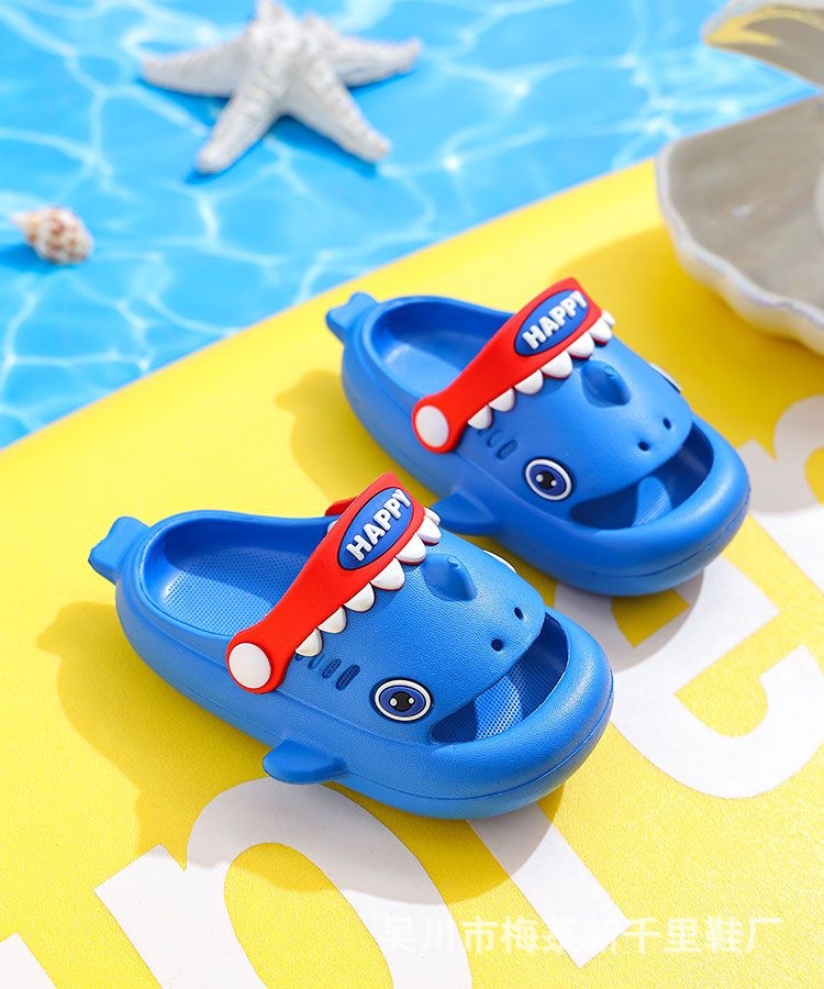 超轻高弹EVA踩屎感厚底卡通鲨鱼造型小中童洞洞鞋拖鞋902+1