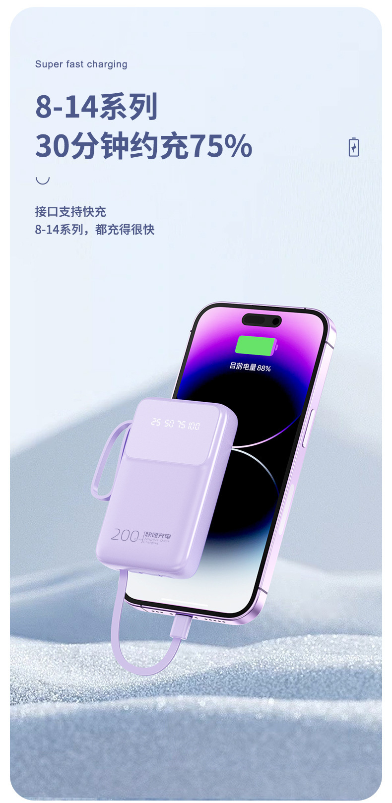批发迷你自带线充电宝20000毫安大容量快充便携移动电源礼品印制