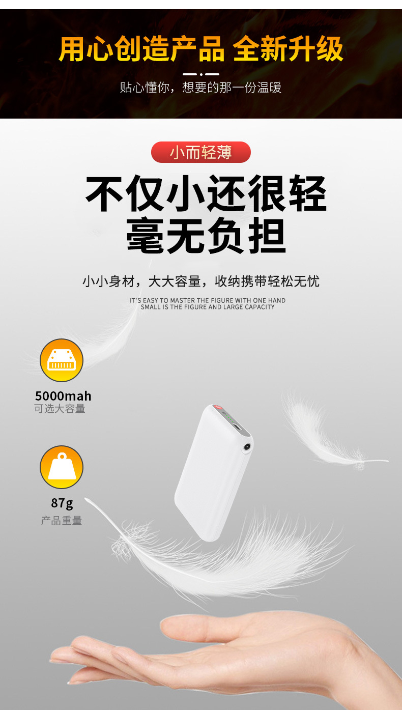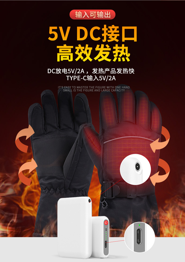 5V5000毫安加热手套电池源头工厂直供智能移动电源加热手套充电宝