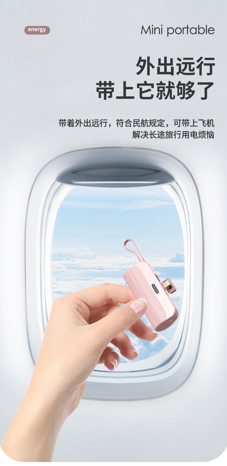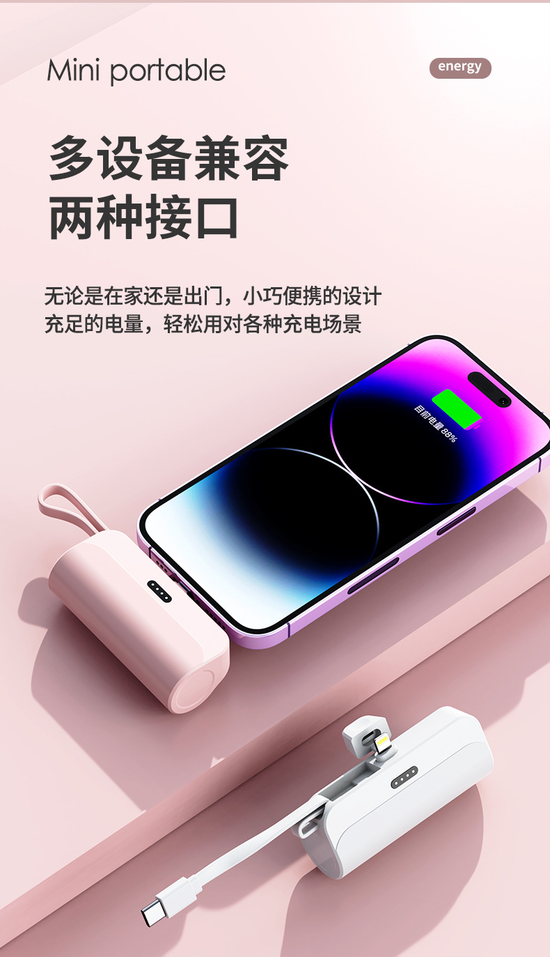 跨境迷你口袋无线胶囊充电宝5000毫安自带线便携移动电源定 制