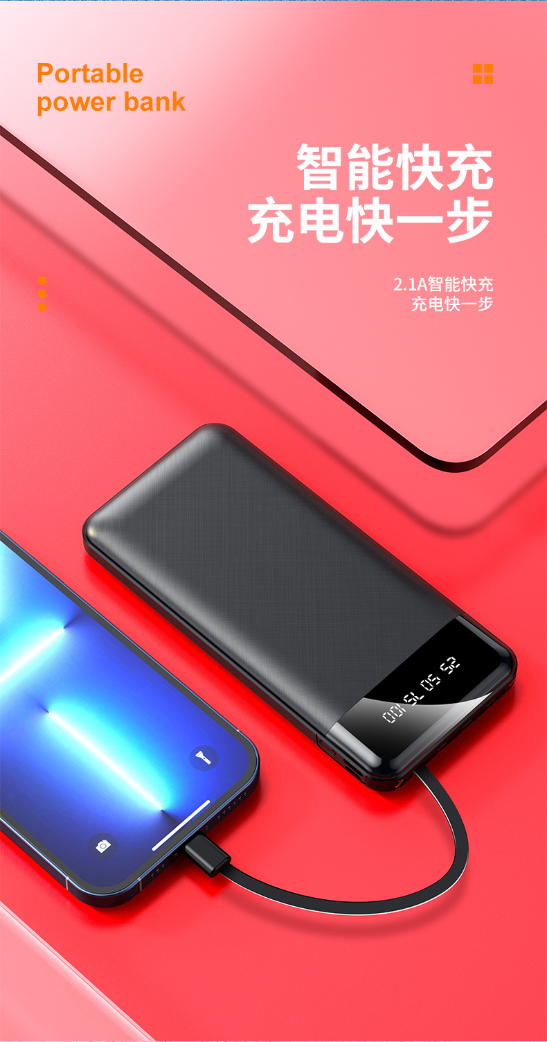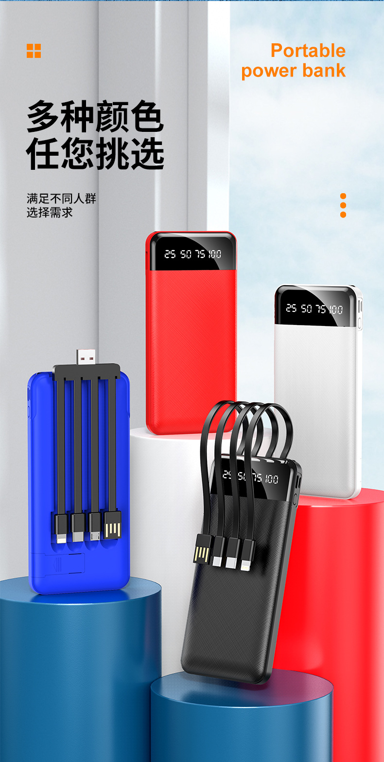 批发自带线便捷充电宝20000毫安商务活动伴手礼移动电源定制LOGO