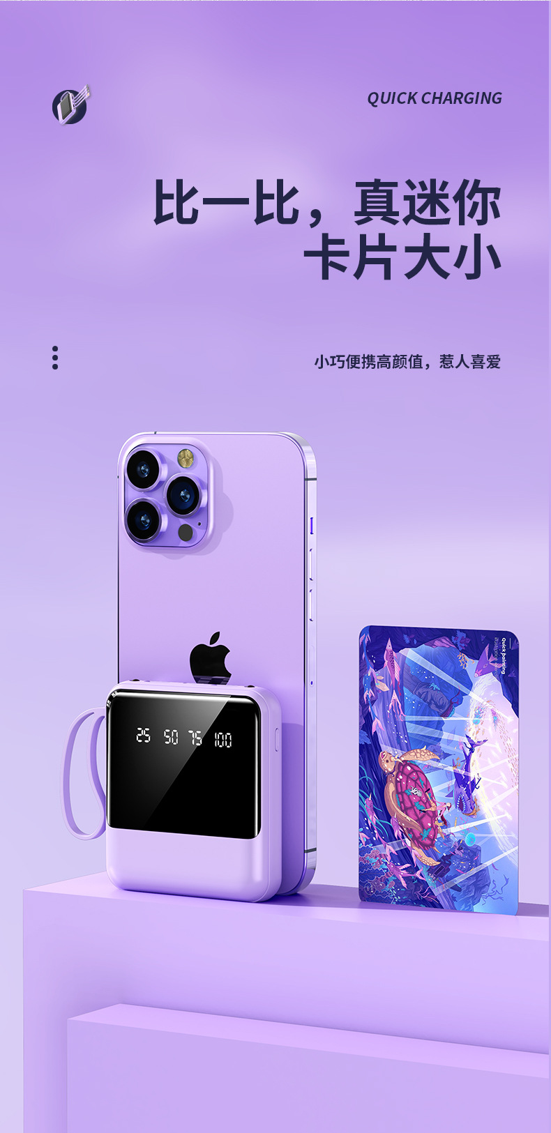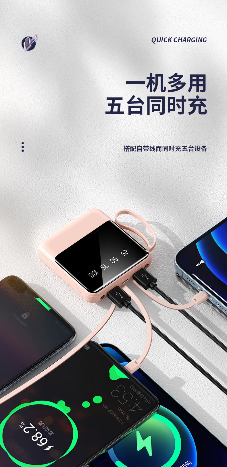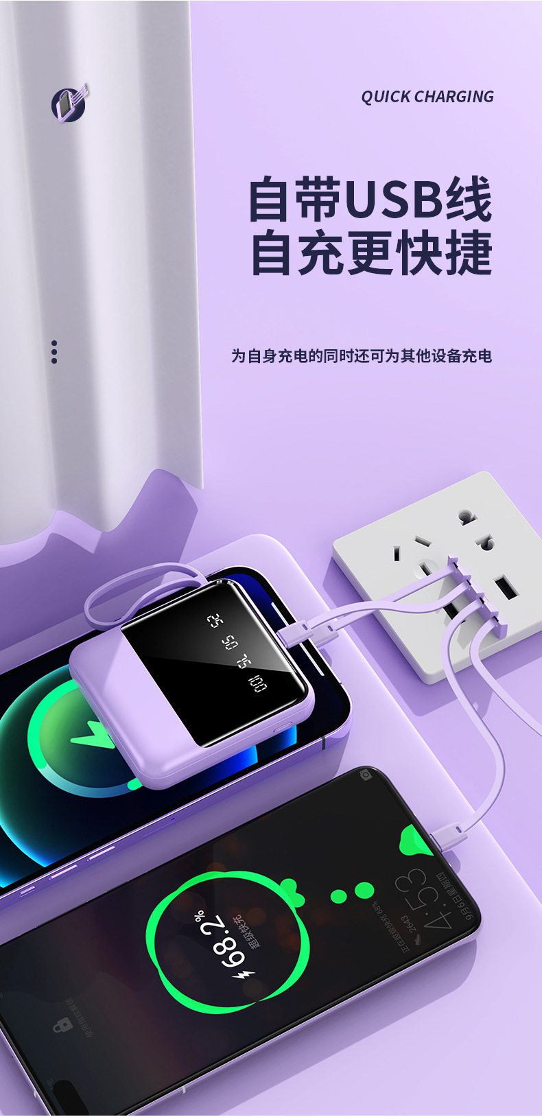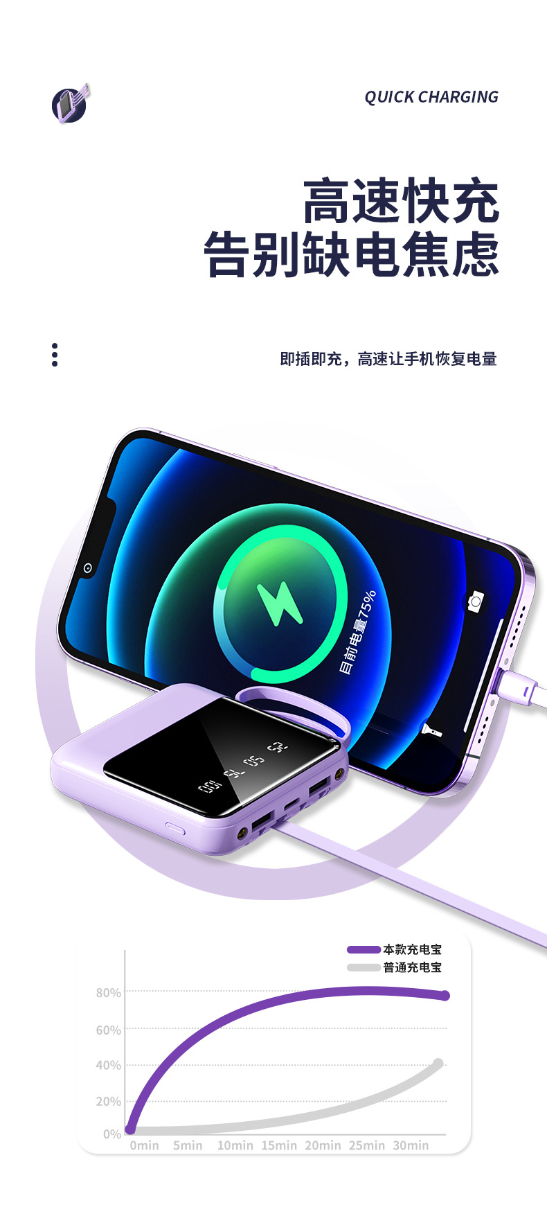 120W超级快充自带线充电宝20000毫安大容量迷你小巧便携移动电源