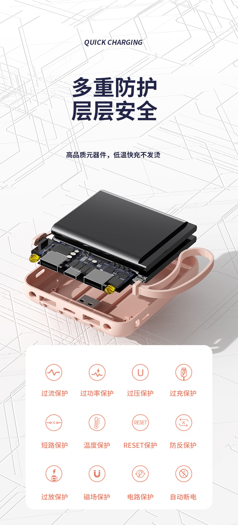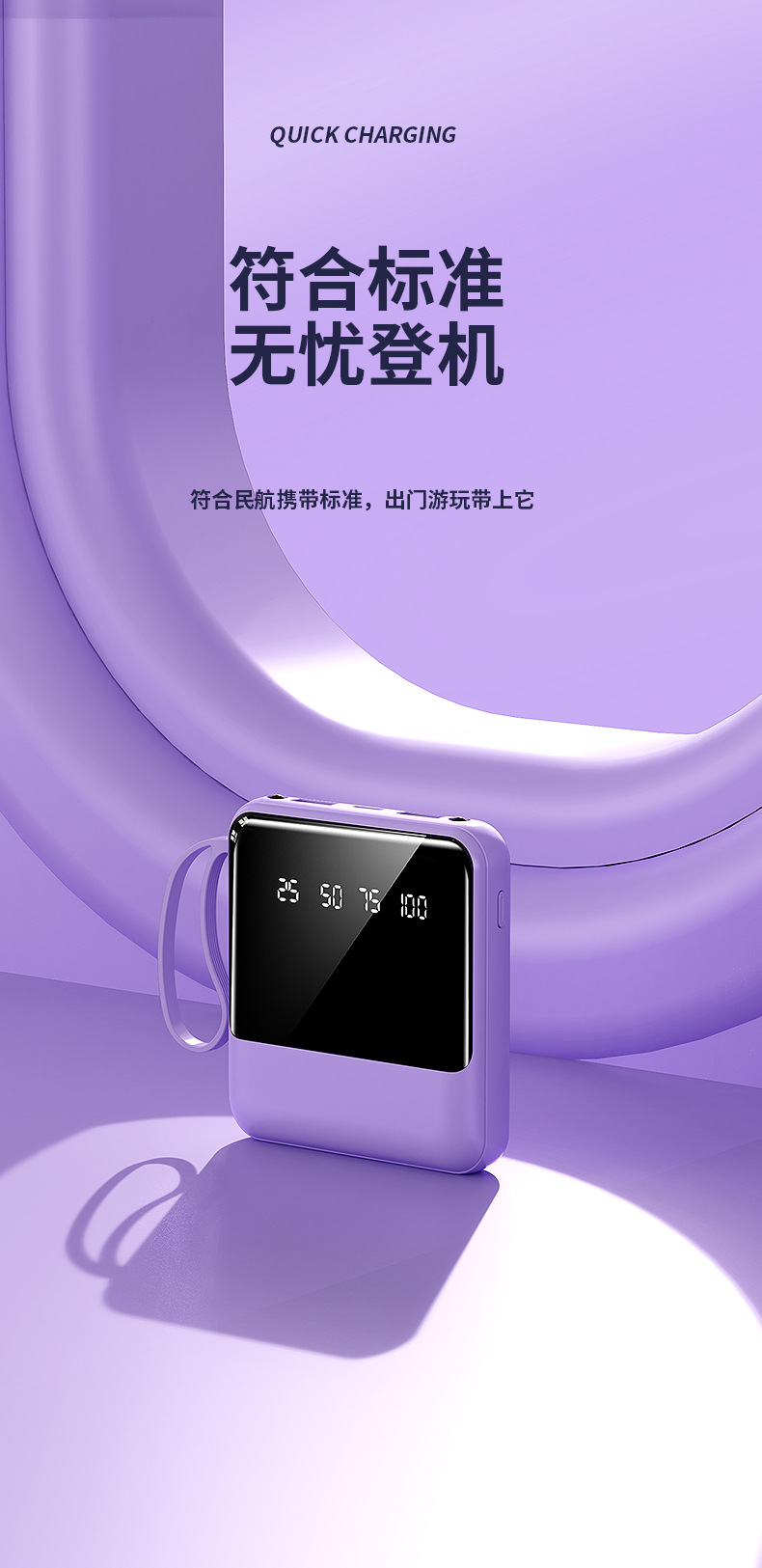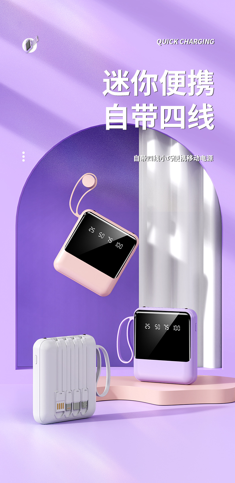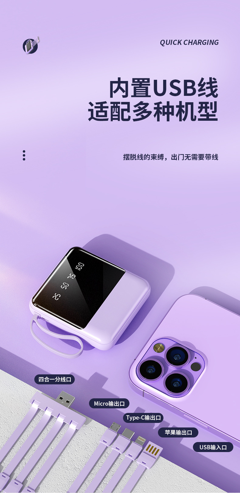 120W超级快充自带线充电宝20000毫安大容量迷你小巧便携移动电源