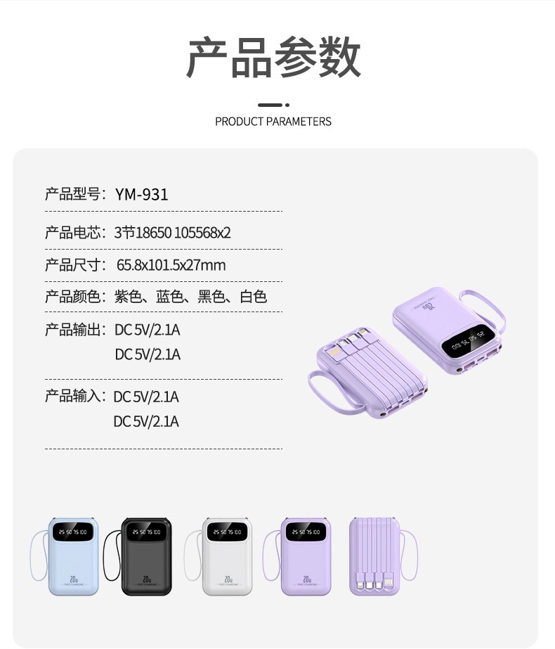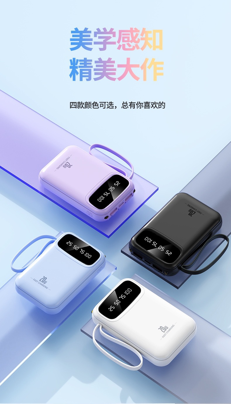 批发小巧自带线充电宝10000毫安大容量移动电源公司礼品印制LOGO