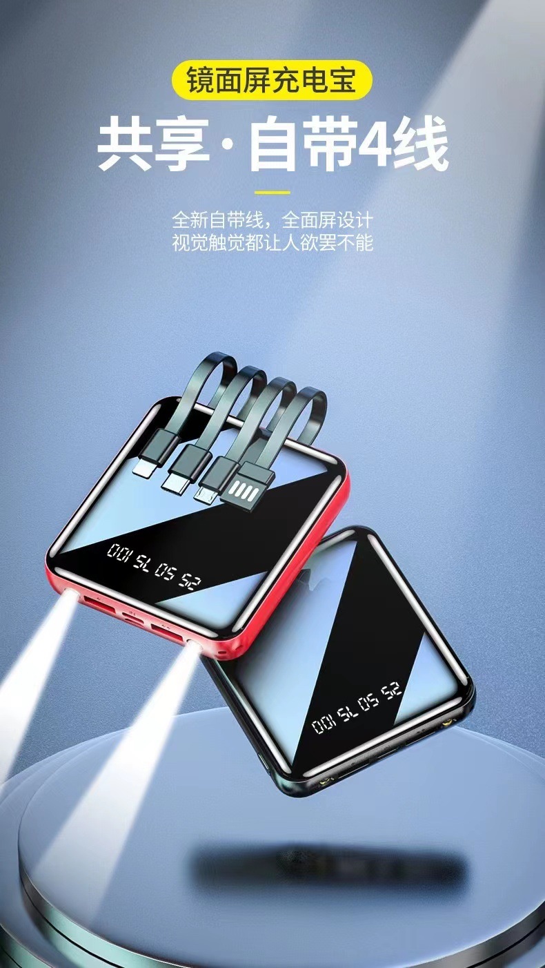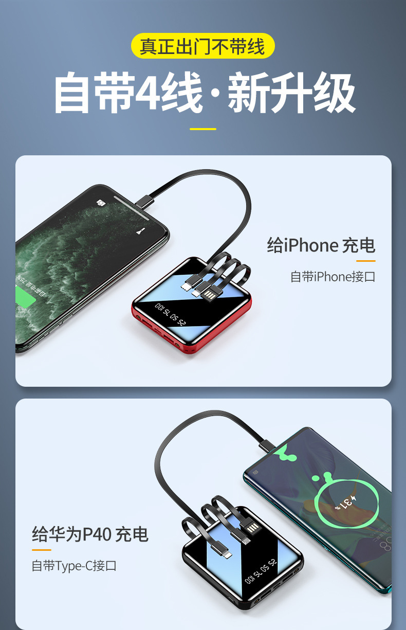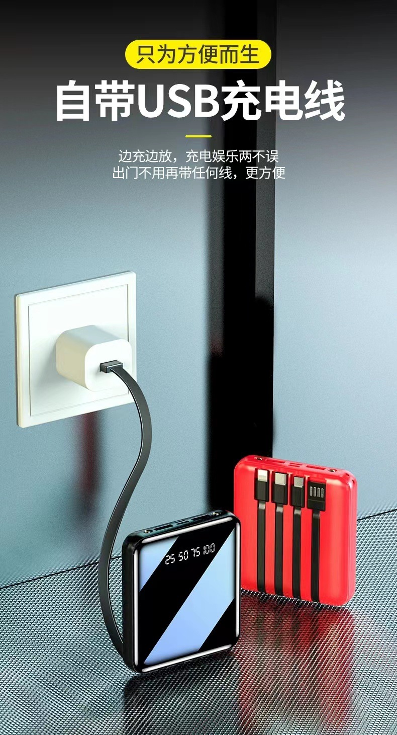 迷你自带线快充20000毫安充电宝大容量批发定 制Logo移动电源礼品
