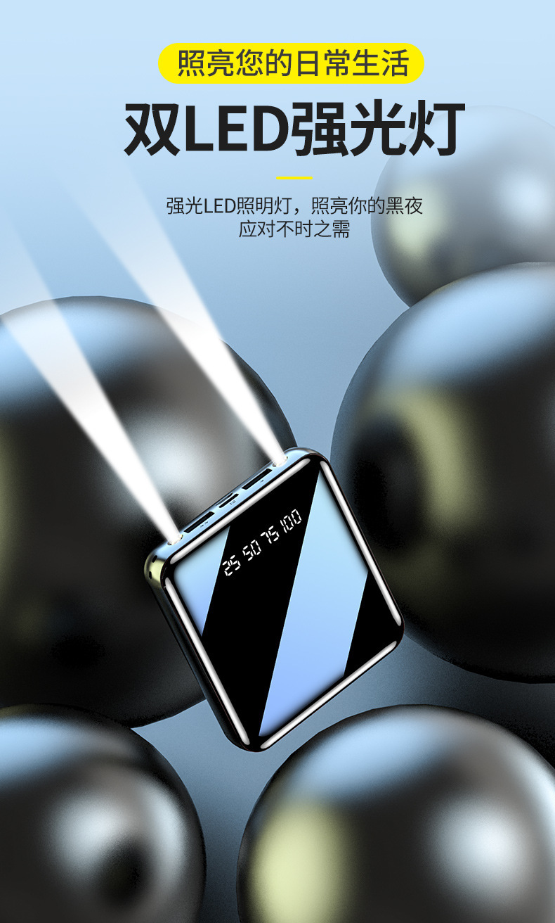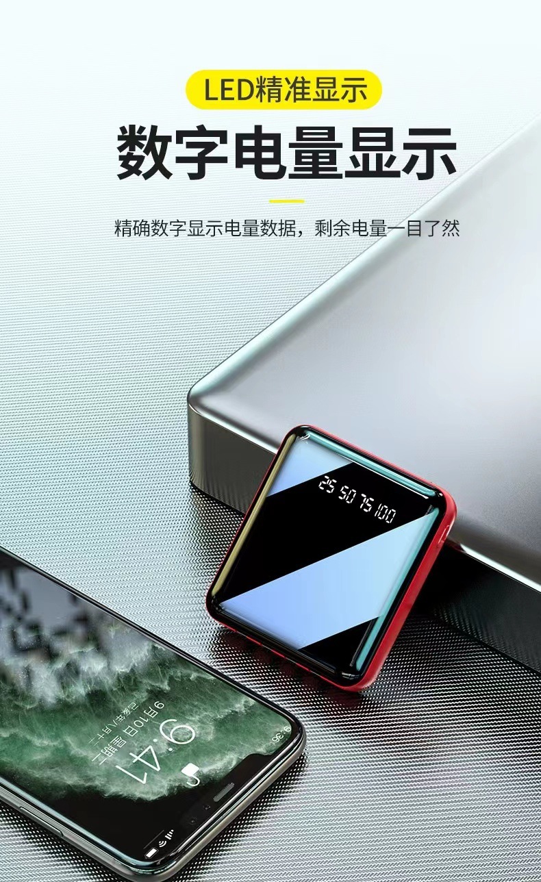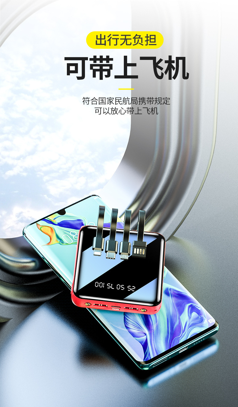 迷你自带线快充20000毫安充电宝大容量批发定 制Logo移动电源礼品
