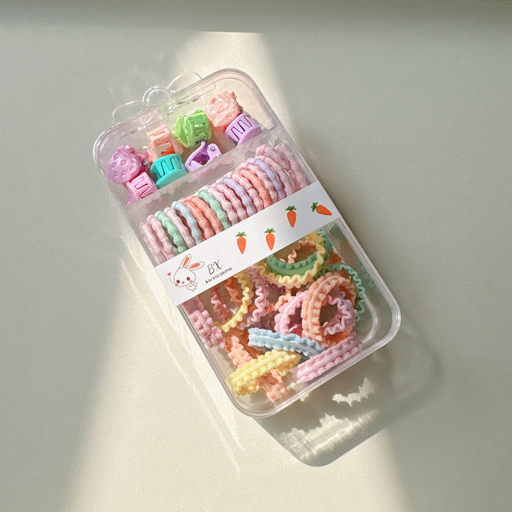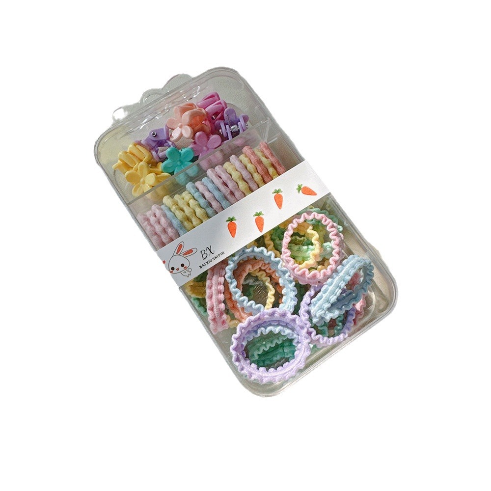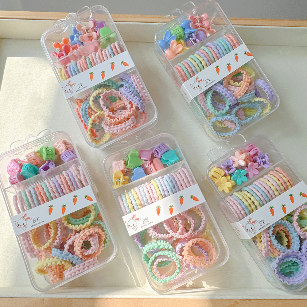 罐装糖果色儿童发夹皮筋套装可爱彩色花边拇指发圈迷你抓夹发饰