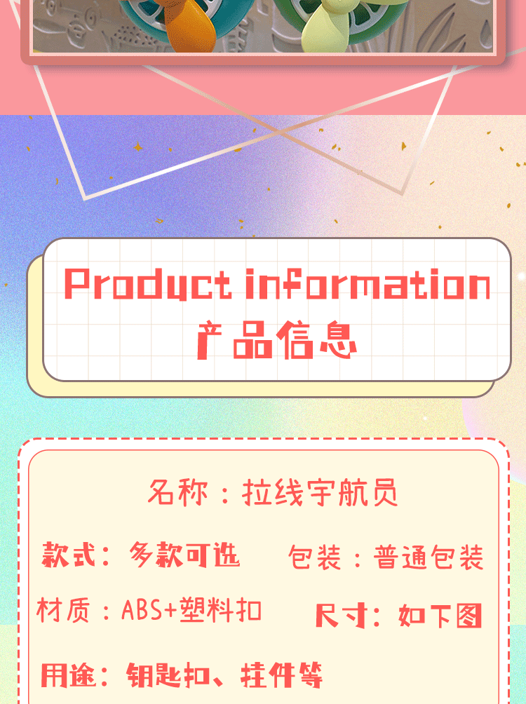 可爱卡通宇航员拉线小玩具钥匙链包包挂件网红公仔钥匙扣挂饰批发