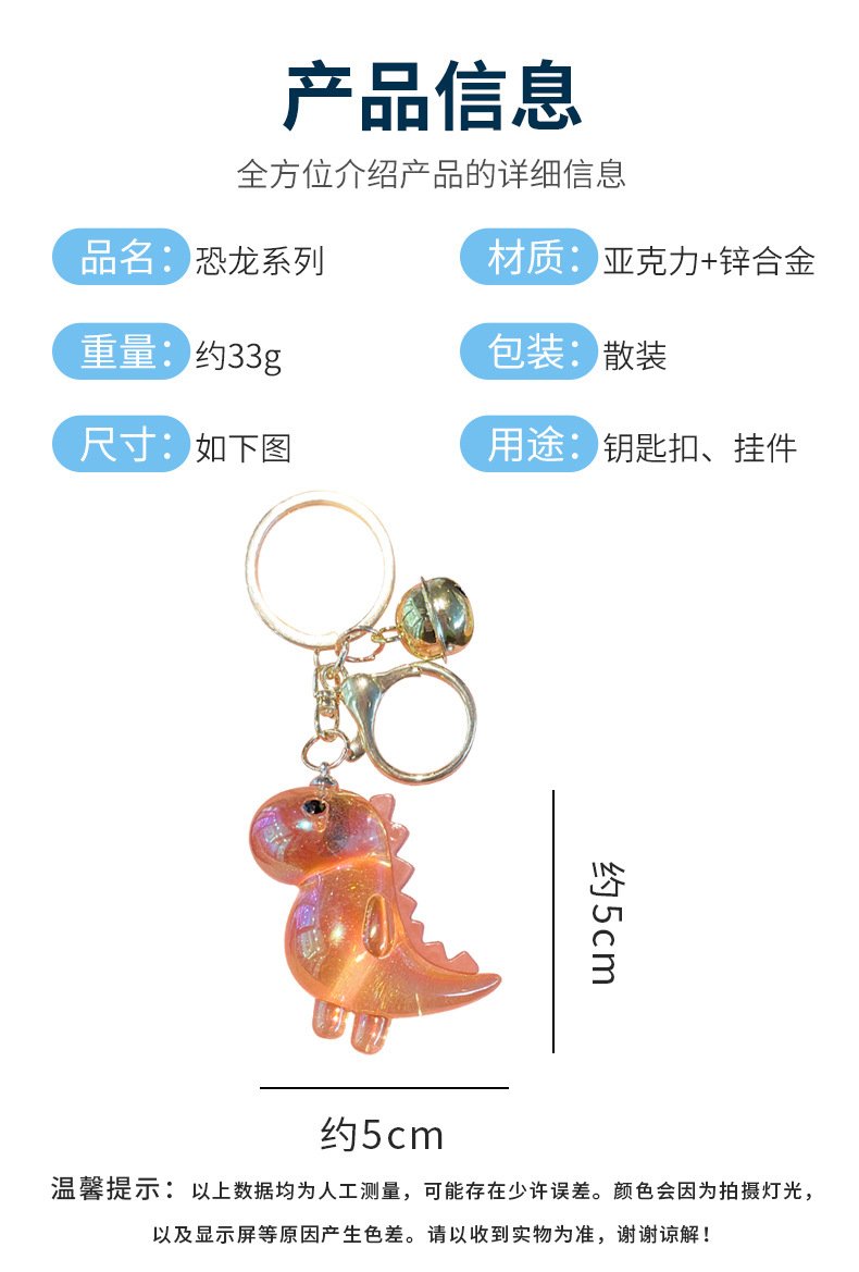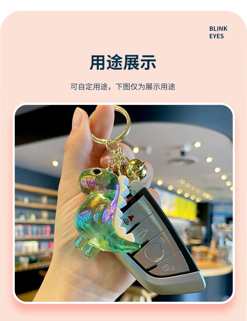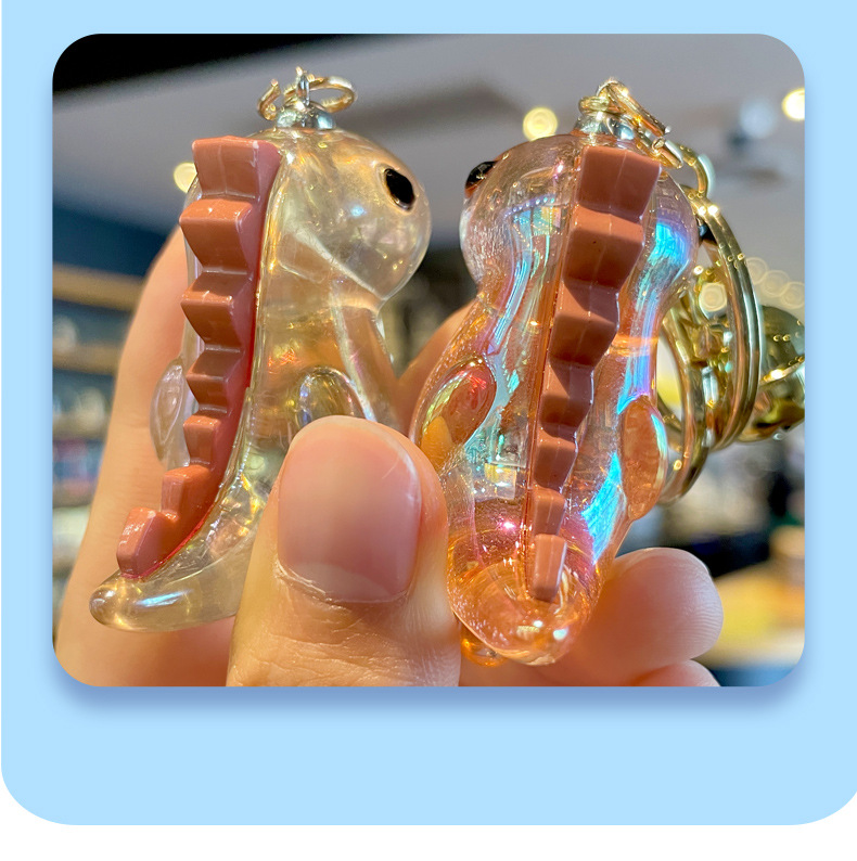新款透明炫彩恐龙亚克力钥匙扣卡通抓娃娃机活动礼品背包汽车挂件