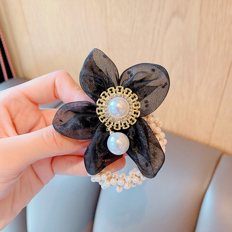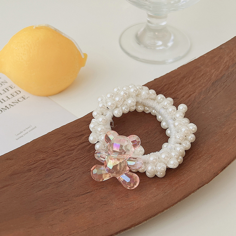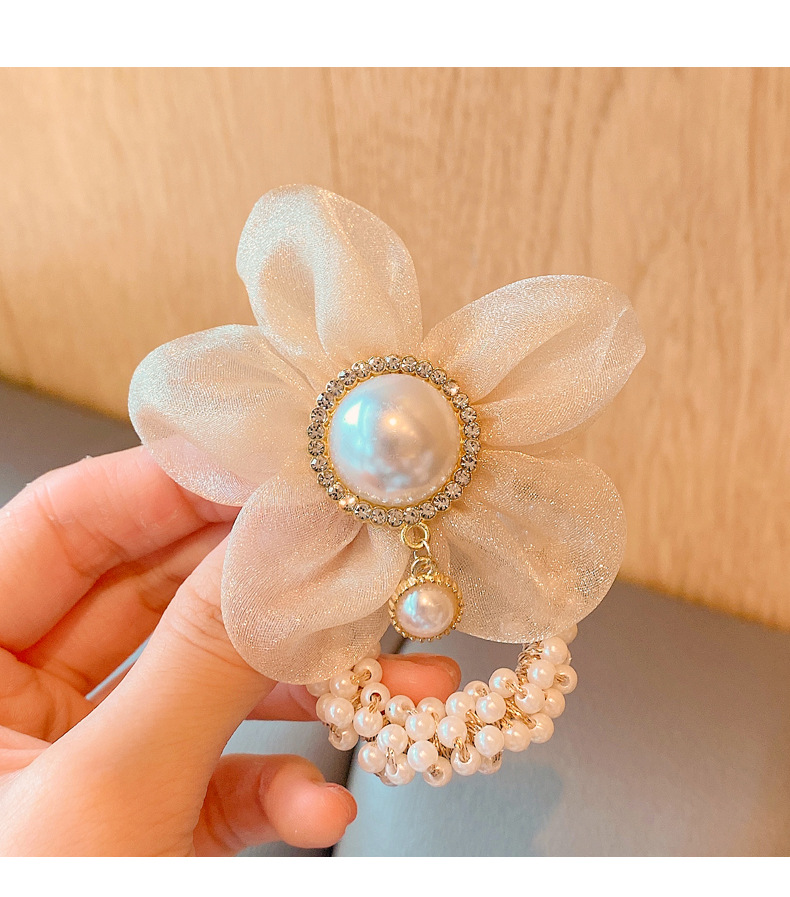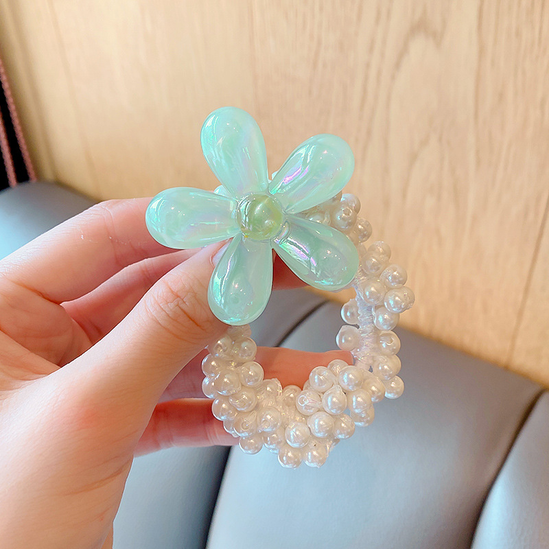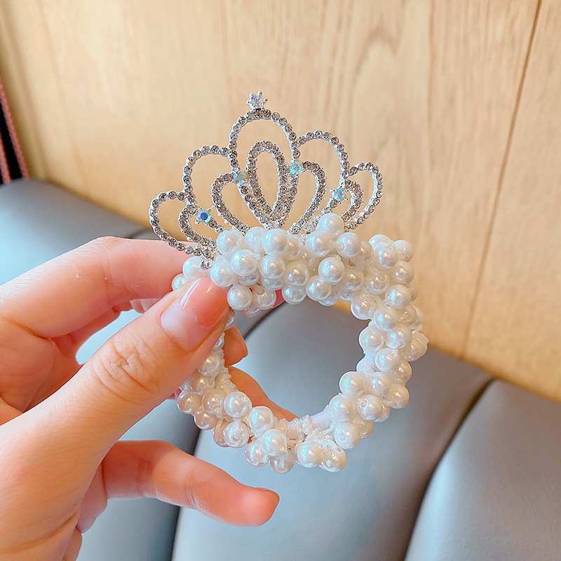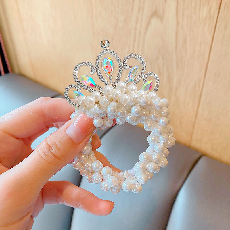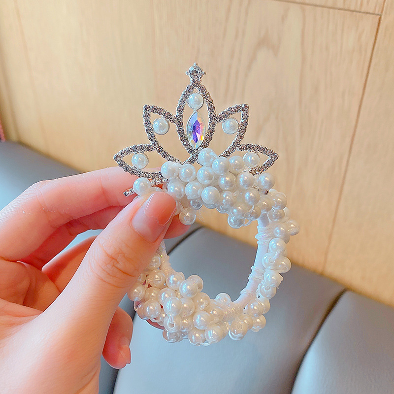 儿童皇冠头饰公主头绳韩国新款珍珠花朵小女孩扎头发丸子头橡皮筋