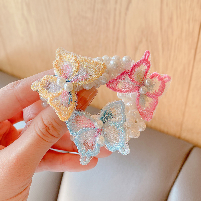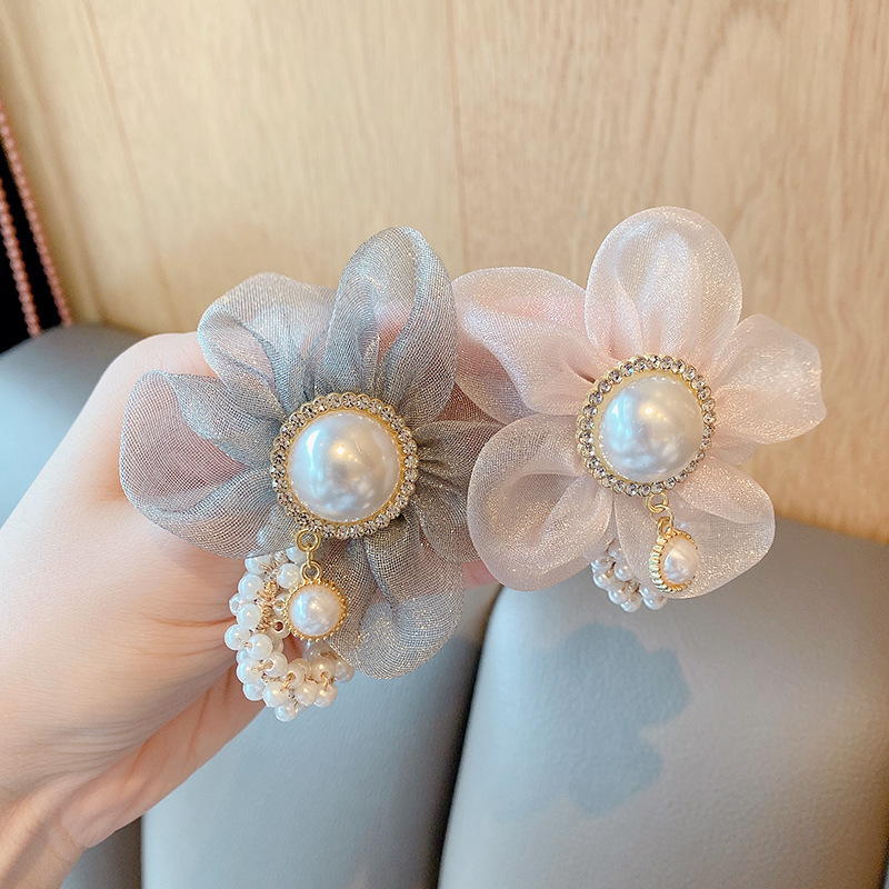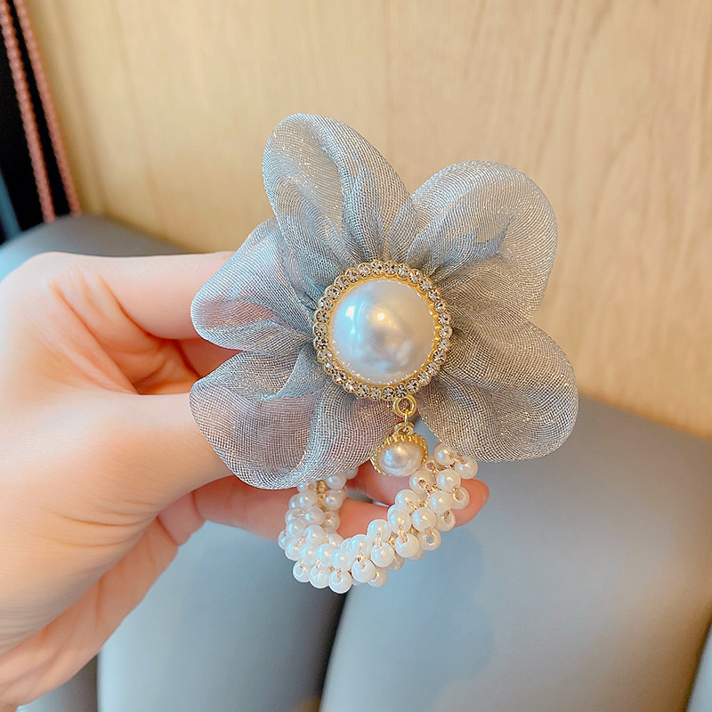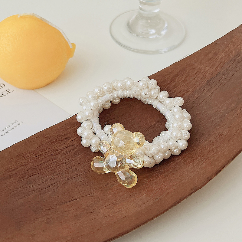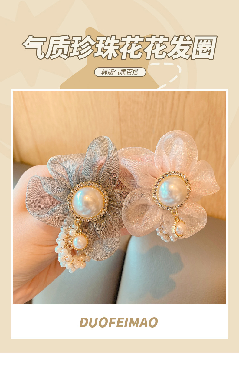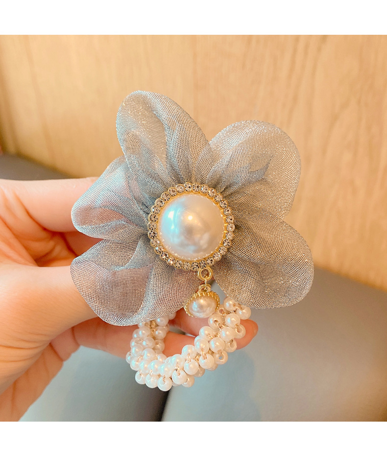 儿童皇冠头饰公主头绳韩国新款珍珠花朵小女孩扎头发丸子头橡皮筋