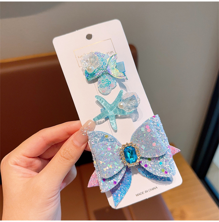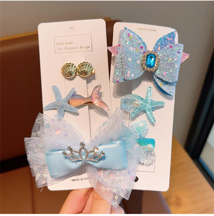 儿童美人鱼发饰冰雪发卡头饰侧边夹小公主发夹头饰超仙宝宝发饰品