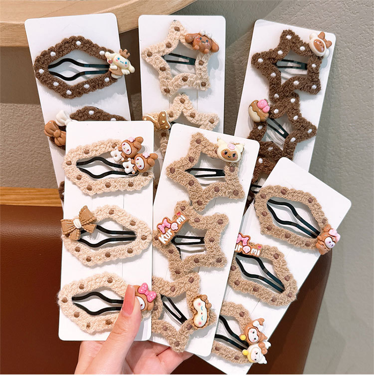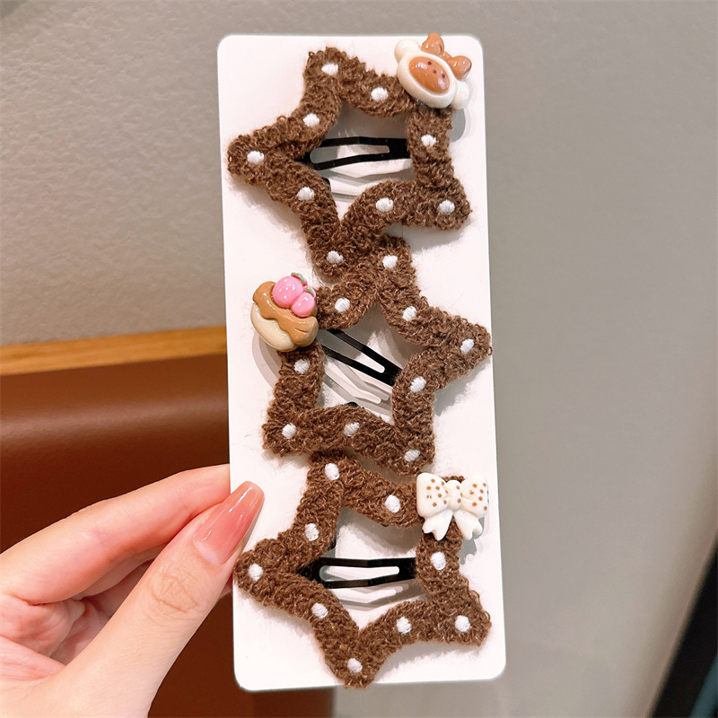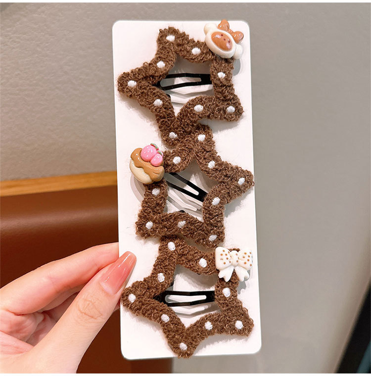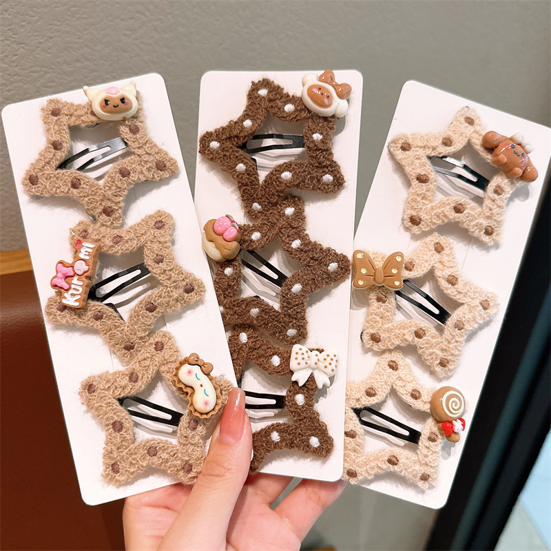 五角星咖色云朵镂空儿童发夹韩版侧边刘海发卡女童不伤发bb夹头饰