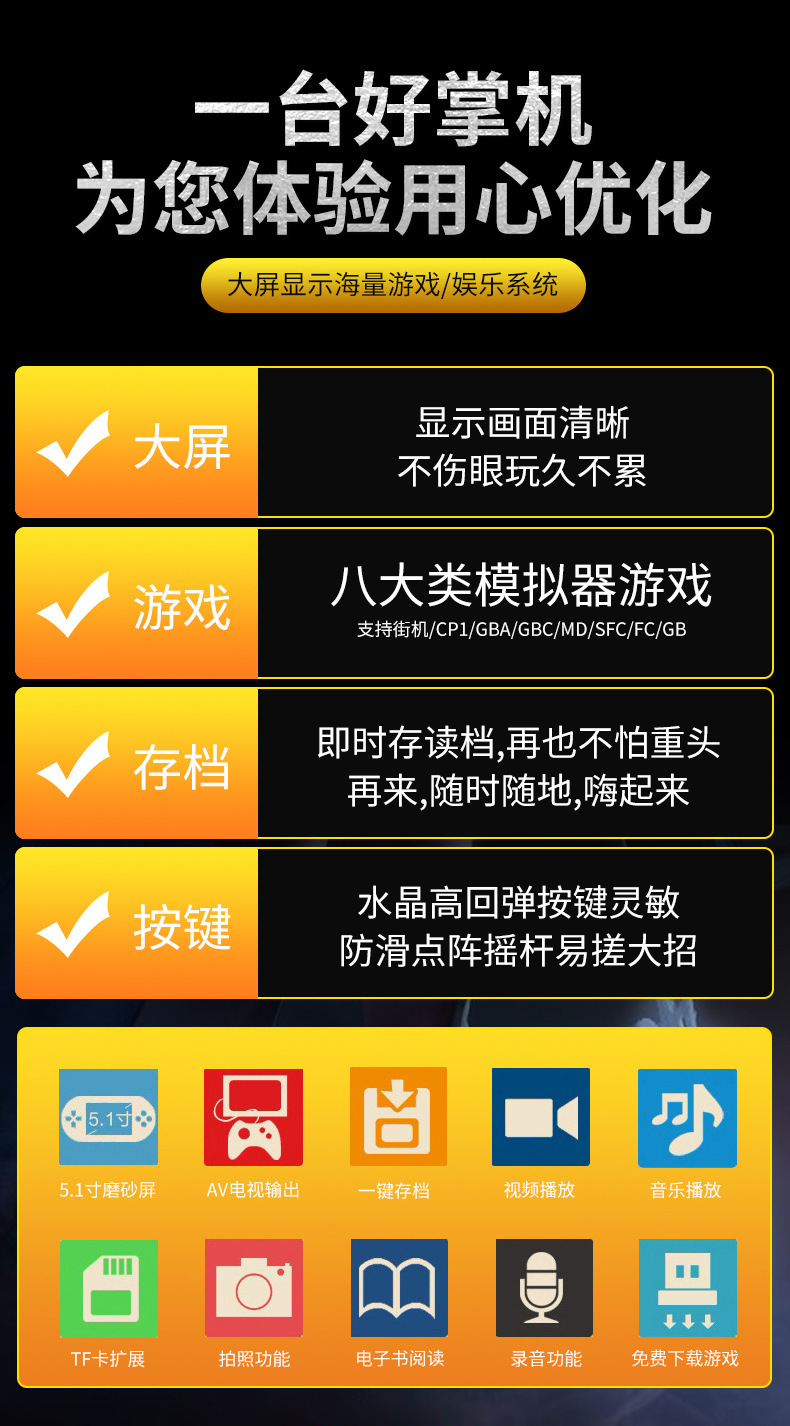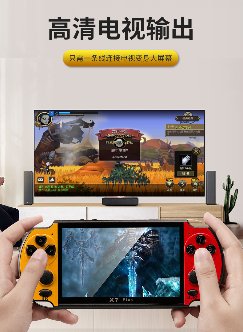 X7plus 跨境新品5.1寸复古高清大屏双摇杆掌上游戏机PSP街机游戏