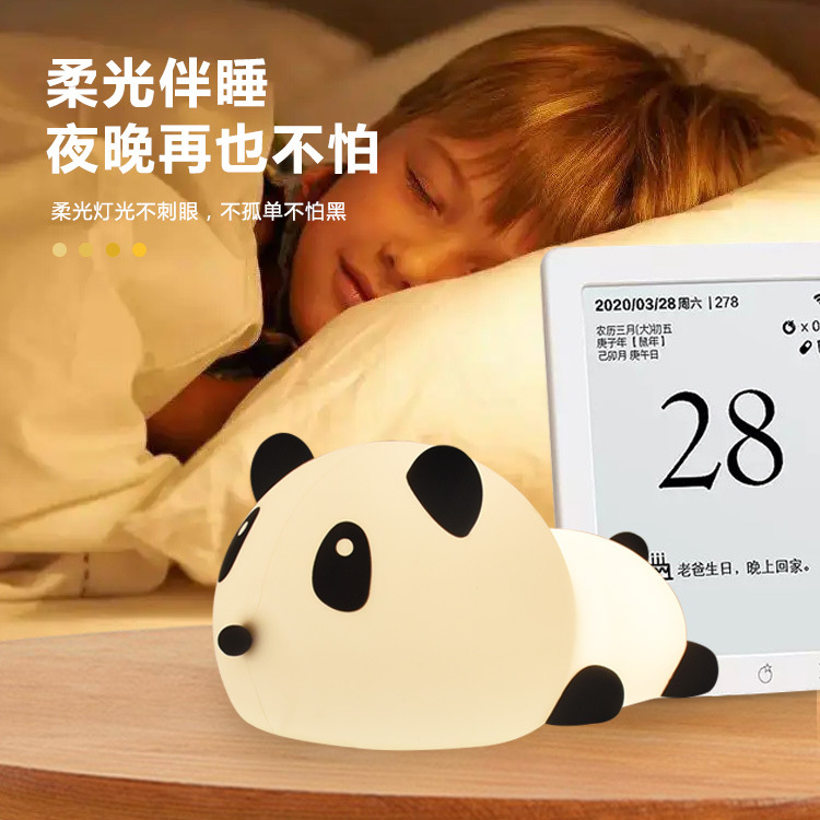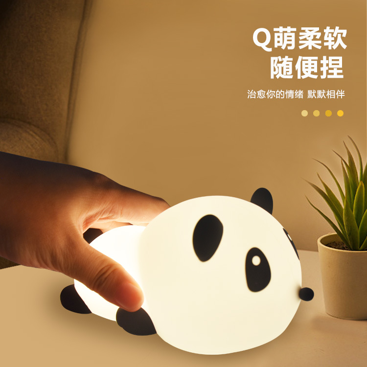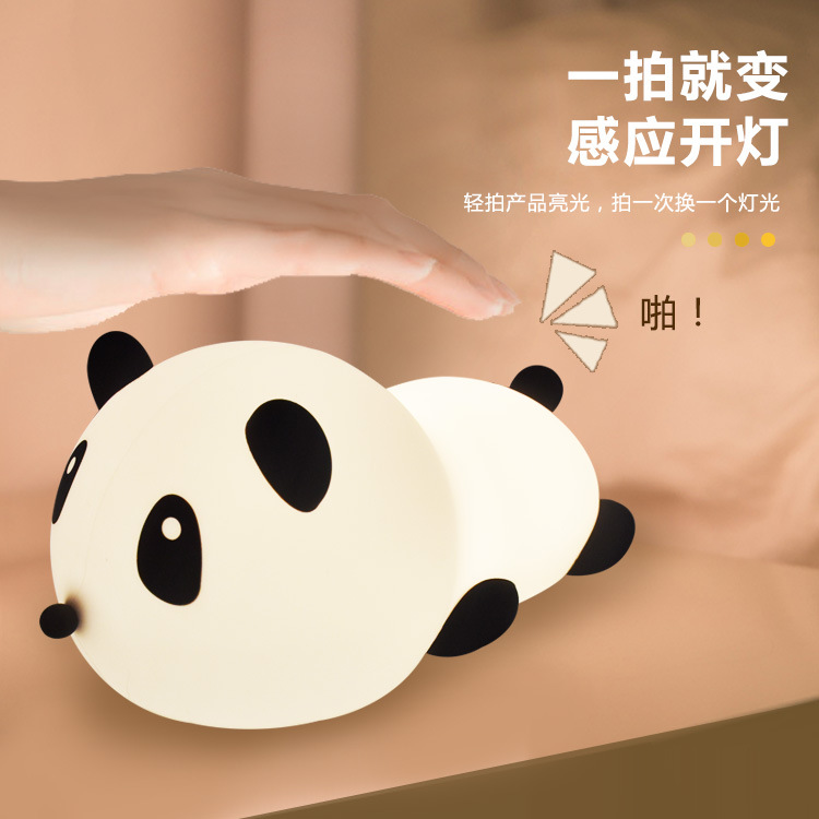 可爱呆萌USB充电趴趴熊猫LED小夜灯软硅胶灯罩拍拍灯5V七彩氛围灯