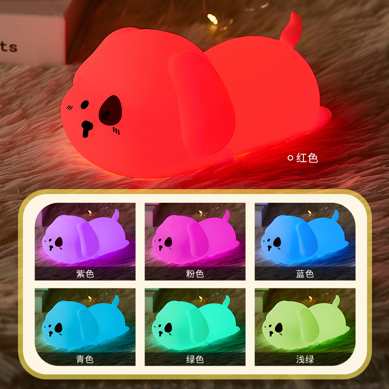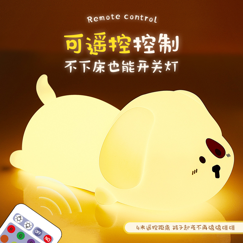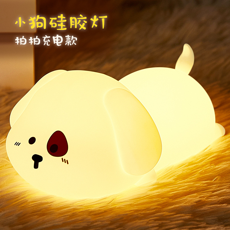 可爱卡通硅胶趴趴小狗解压拍拍灯儿童卧室伴睡定时捏捏灯礼物装饰