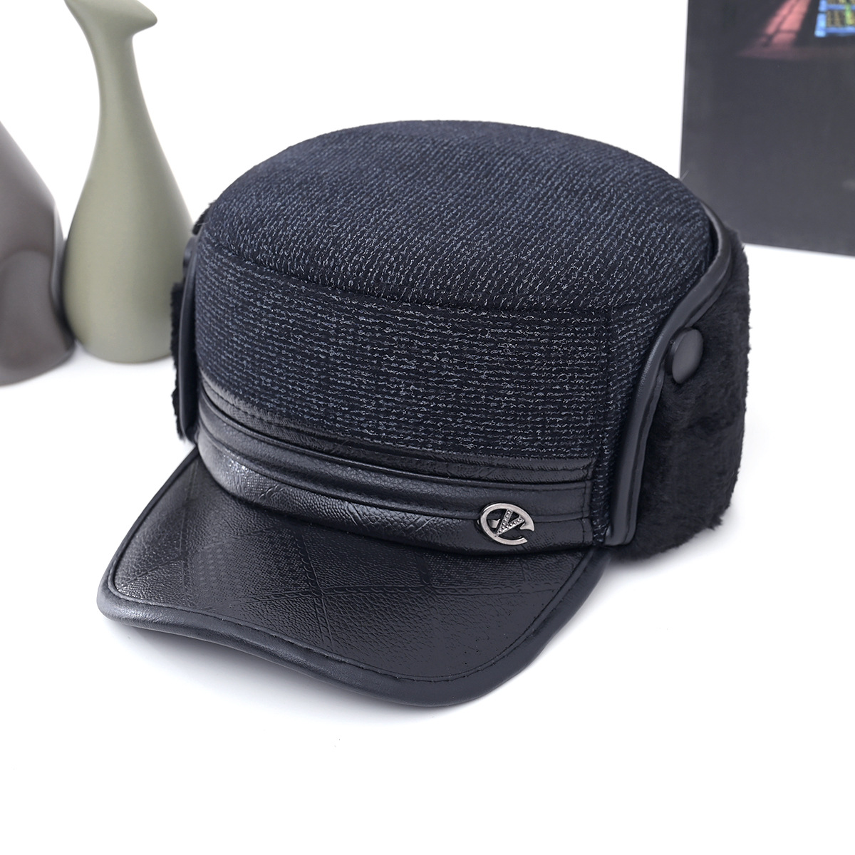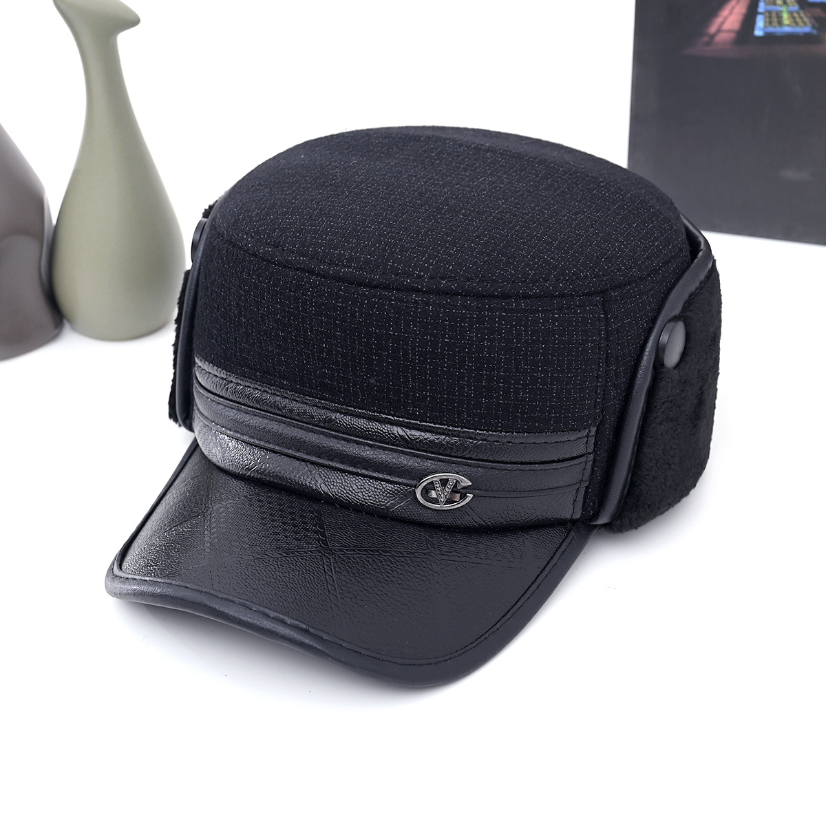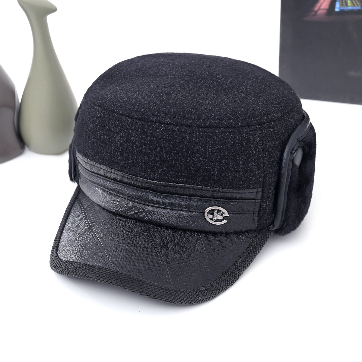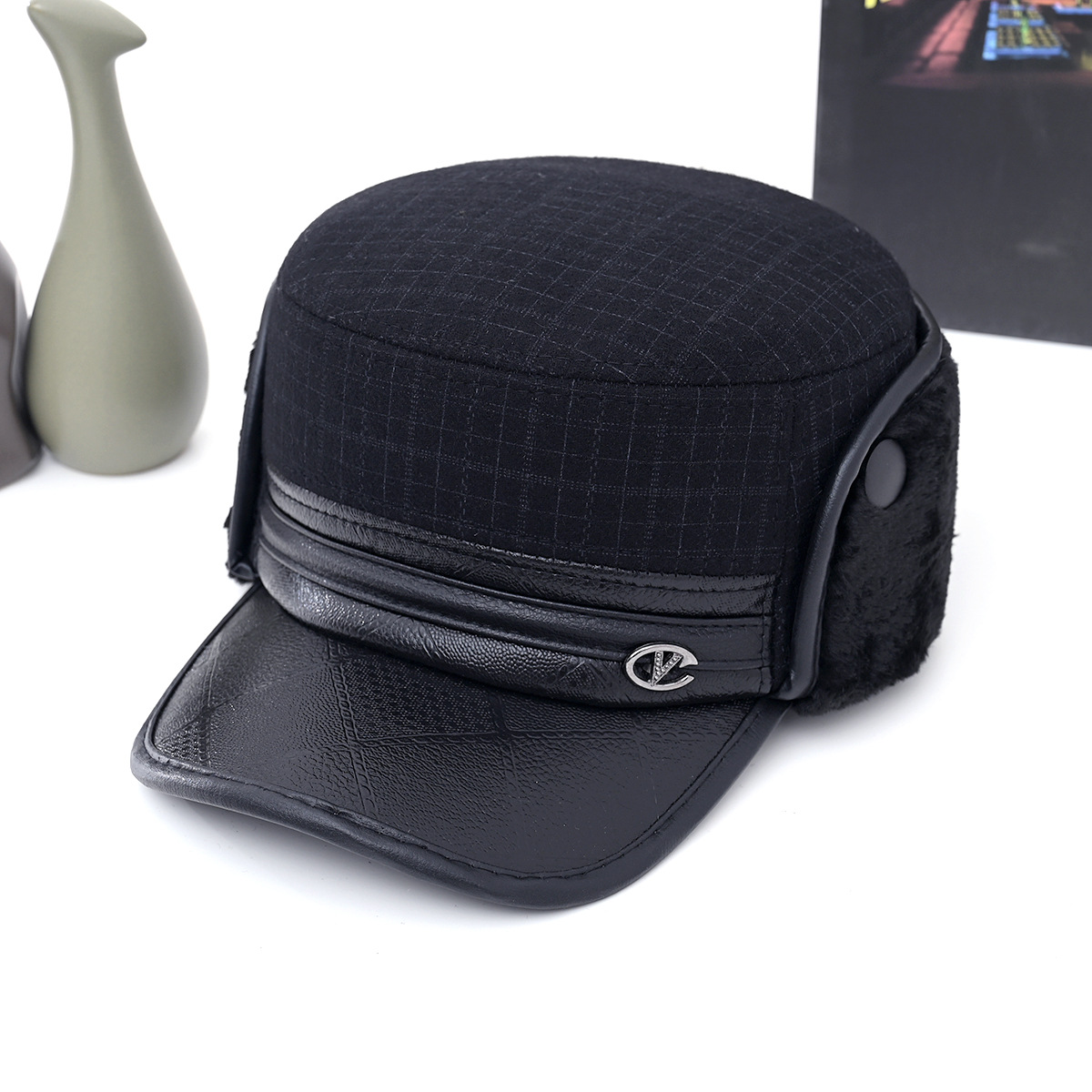 冬中老年帽男士爸爸爷爷保暖平顶棉帽老头加绒加厚护耳防寒鸭舌帽