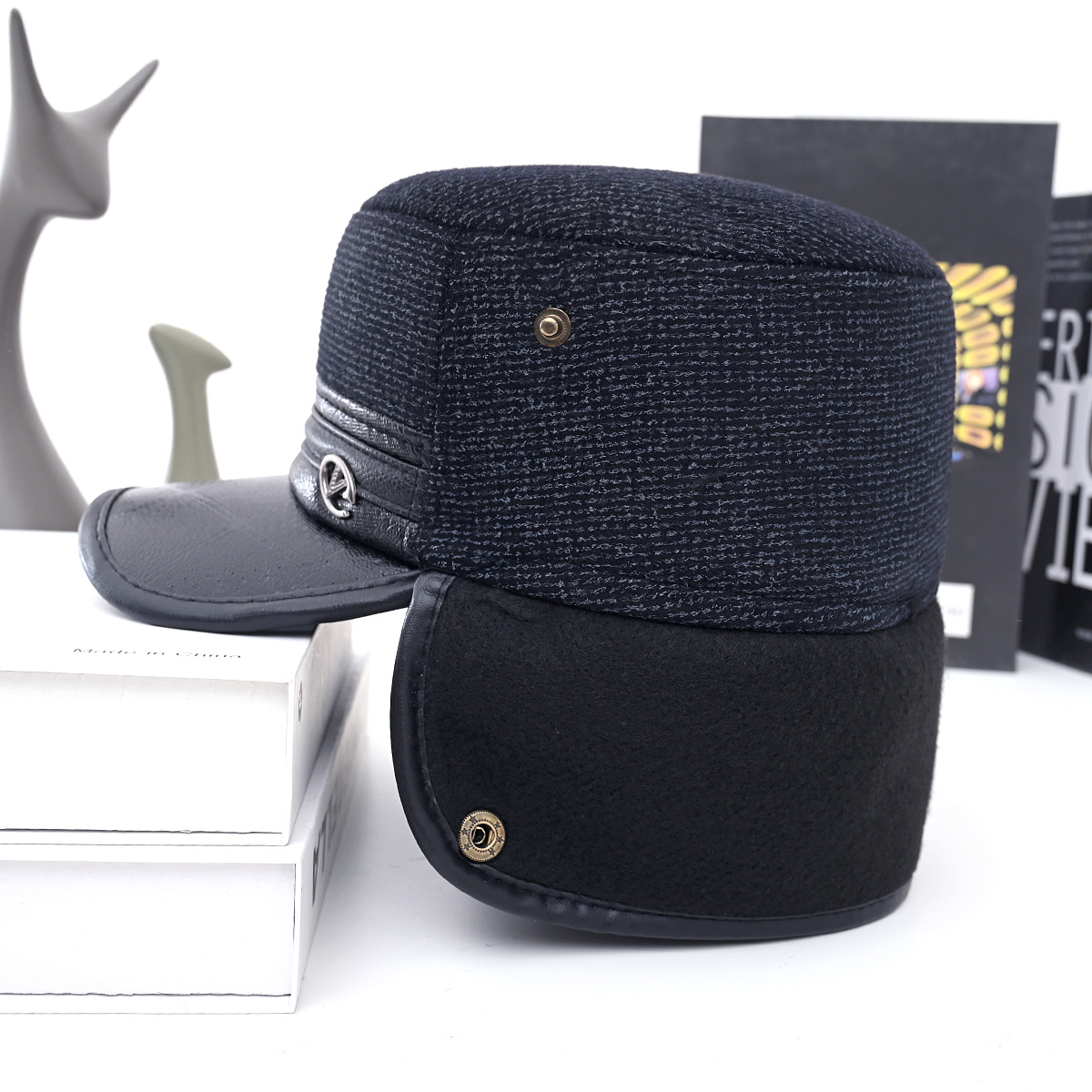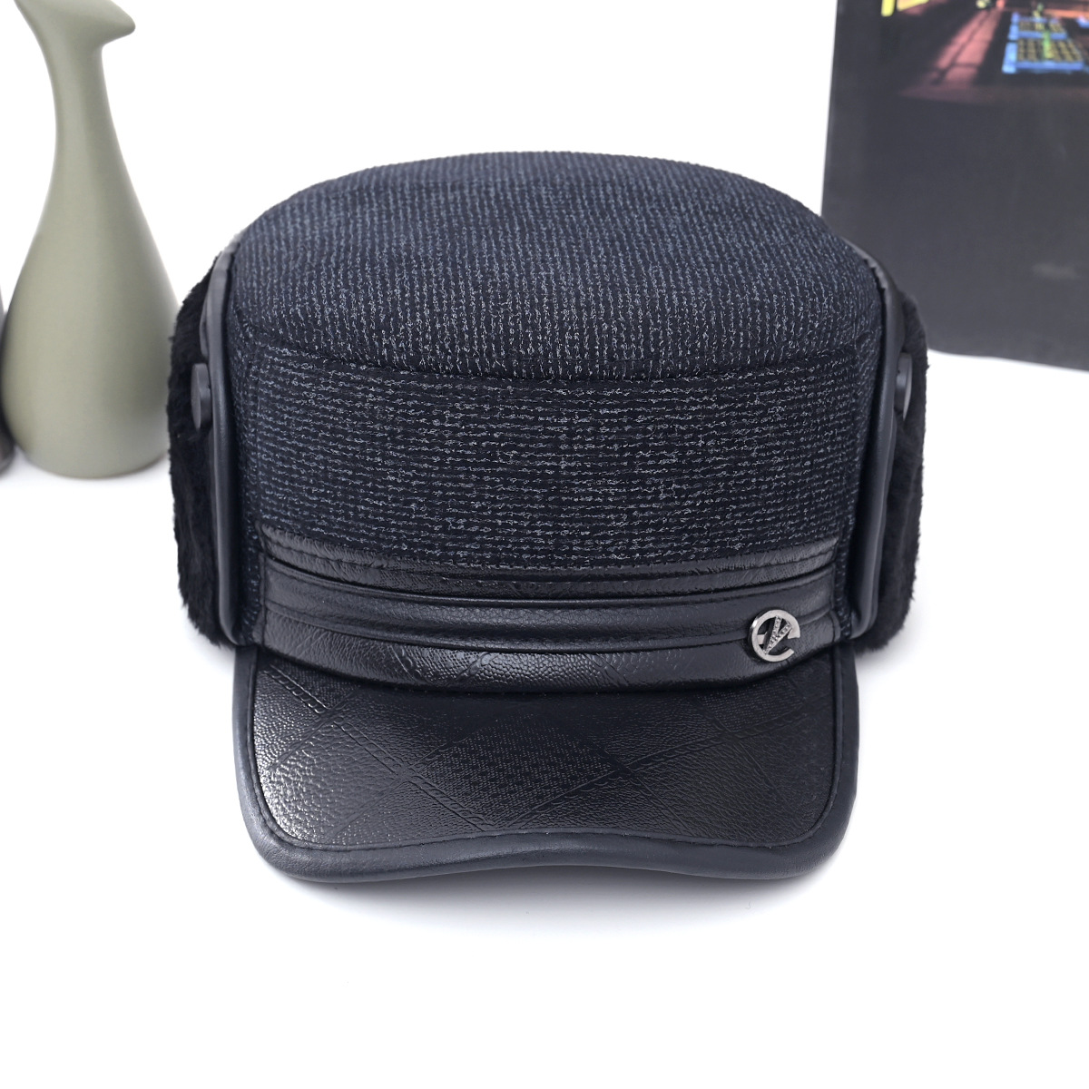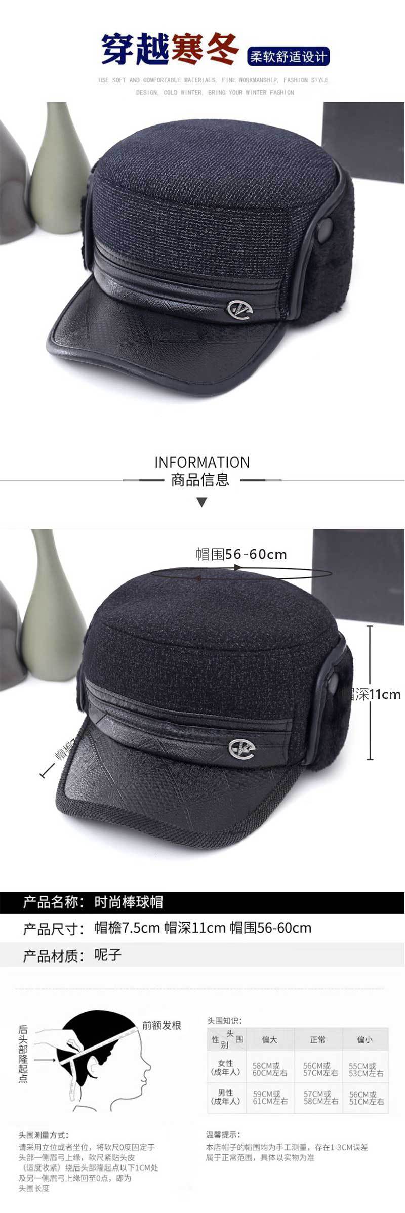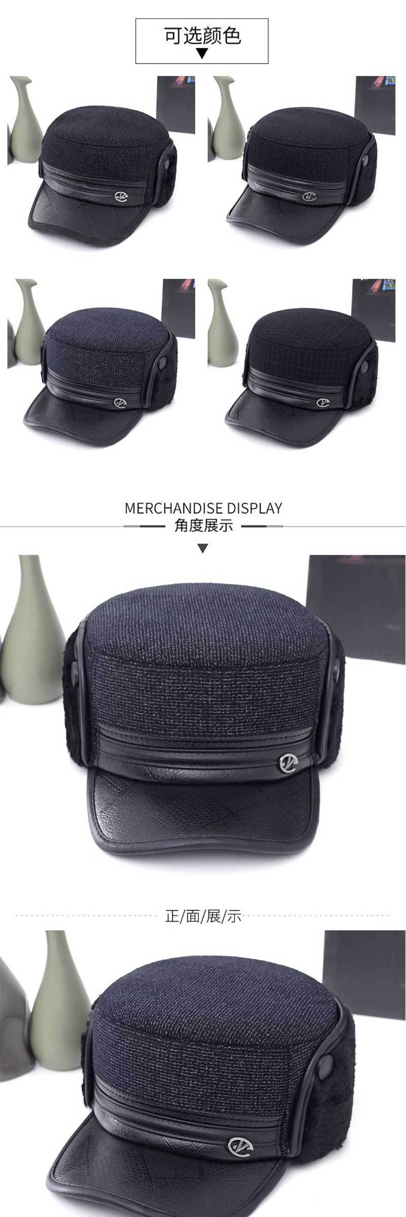 冬中老年帽男士爸爸爷爷保暖平顶棉帽老头加绒加厚护耳防寒鸭舌帽