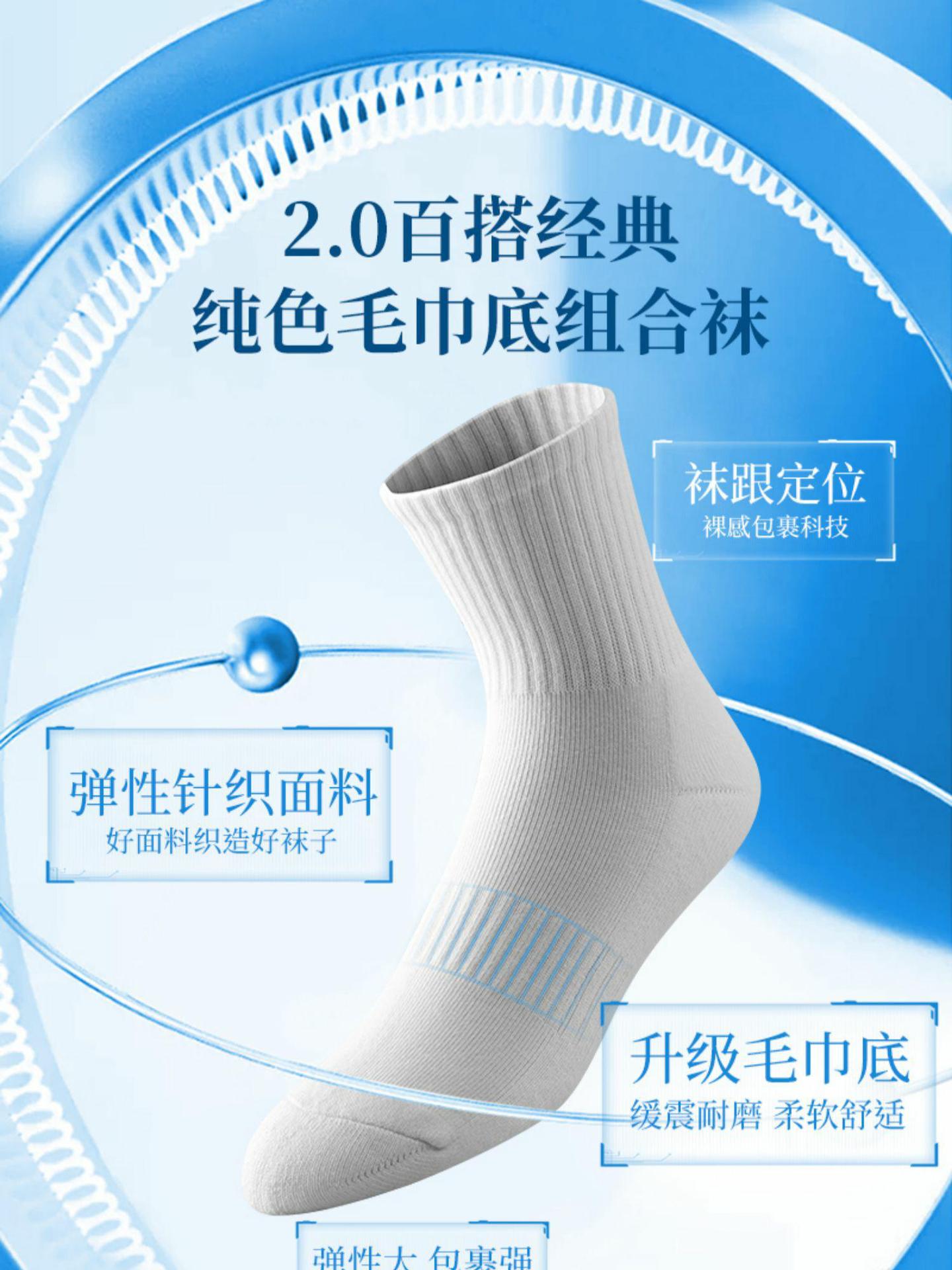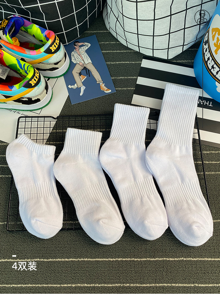白色 长筒袜子男士防臭吸汗夏季薄款中筒运动棉袜短袜诸暨袜业
