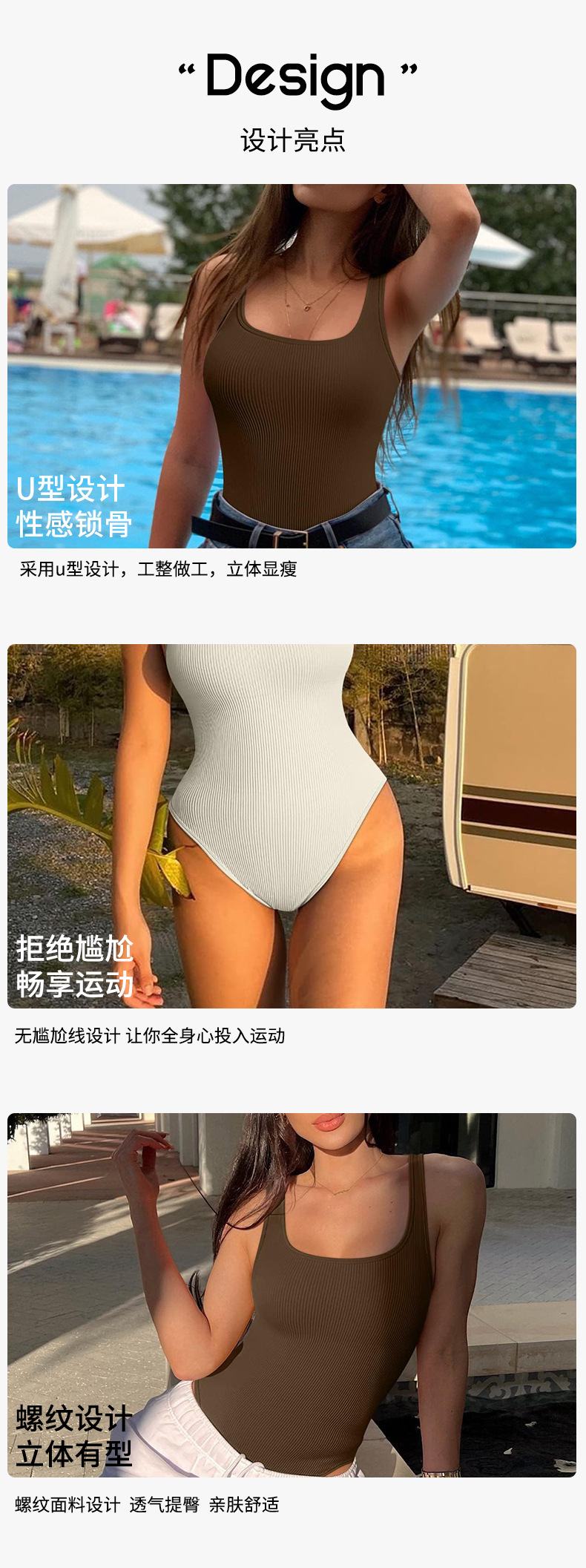 沄尚夏季高级感连体瑜伽服带胸垫欧美一体三角连体衣无缝丁字裸感