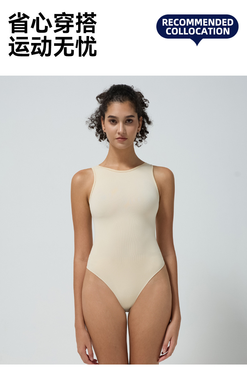 沄尚高弹莱卡背心塑身衣女收腹束腰无缝紧身丁字塑形连体瑜伽服