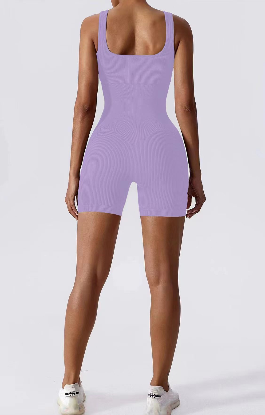 现货无缝方领螺纹短裤连体衣健身美体瑜伽服速干透气紧身连体女装