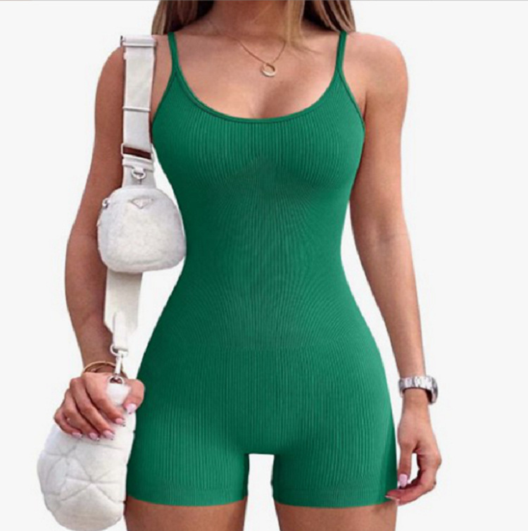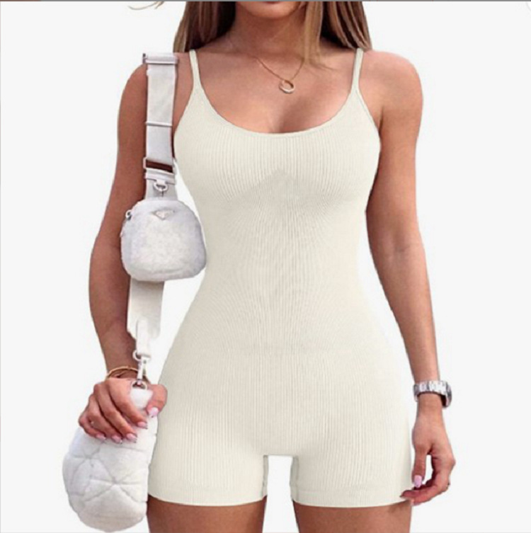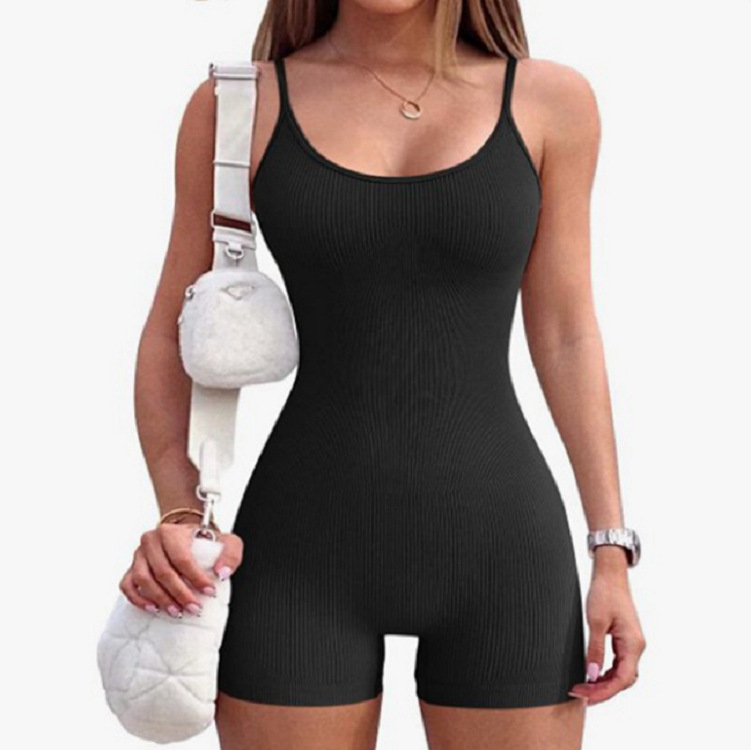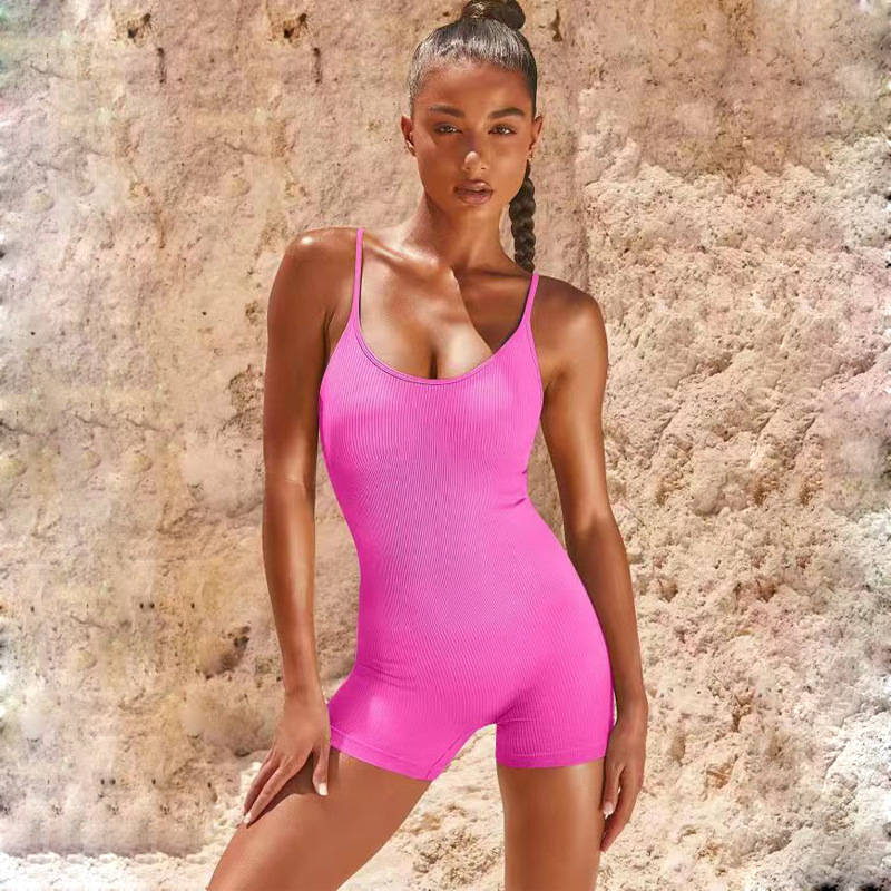 爆款ins无缝针织一体式瑜伽服连体衣 螺纹性感提臀修身短裤连体衣