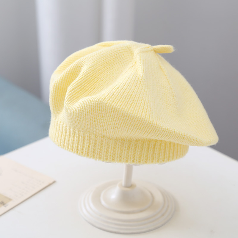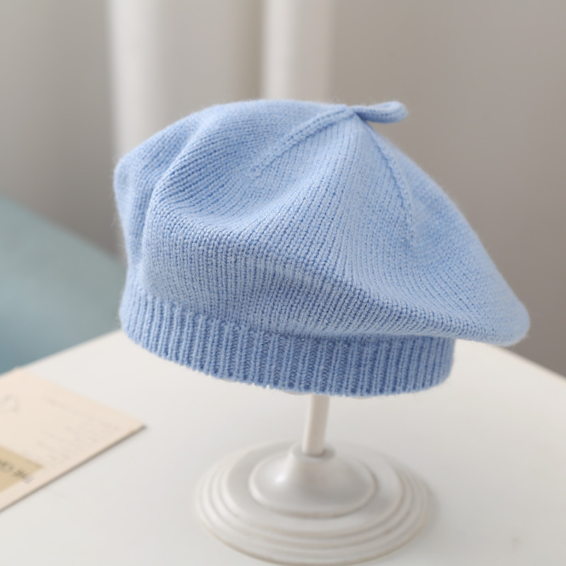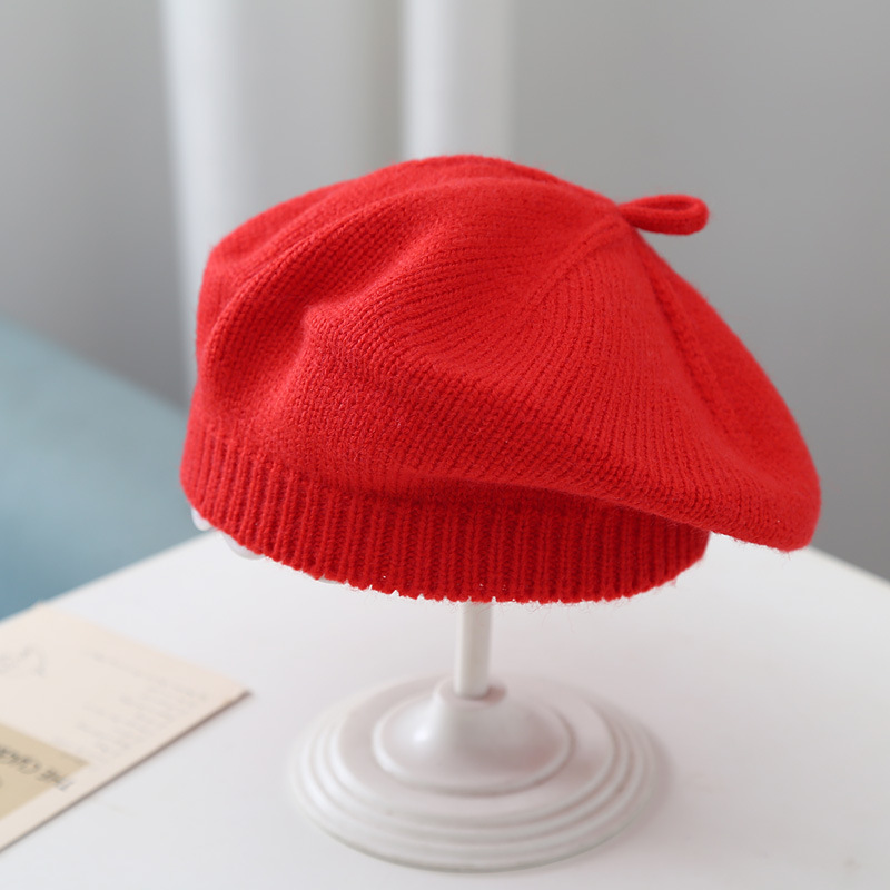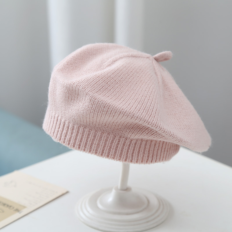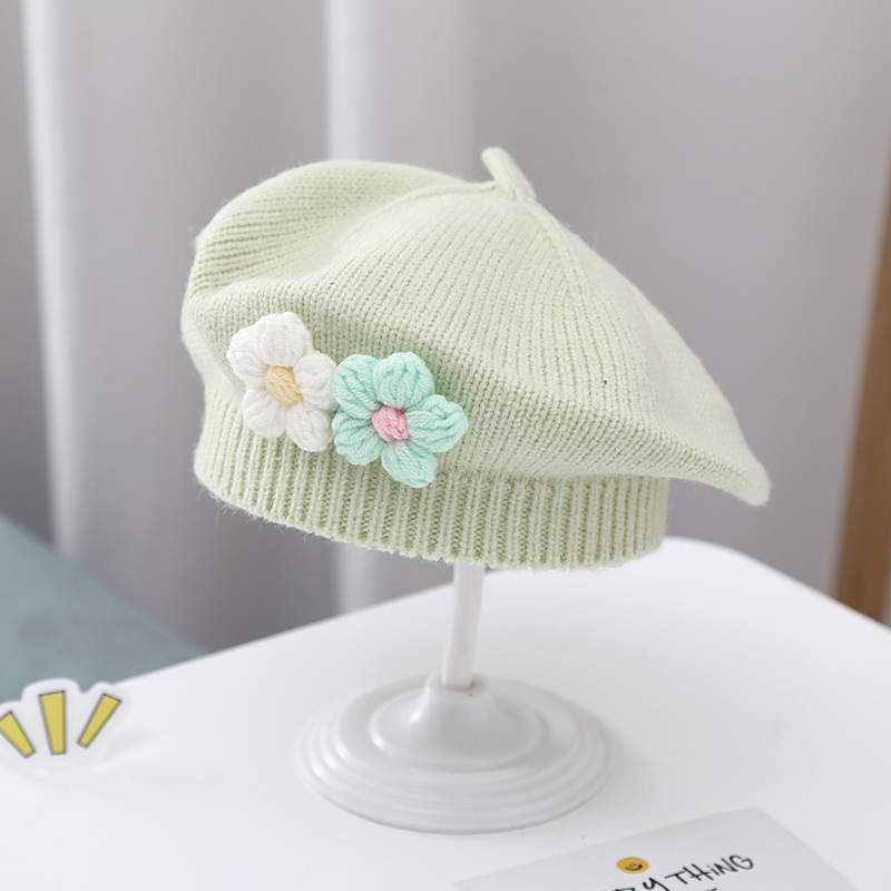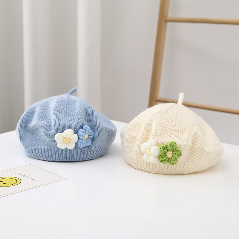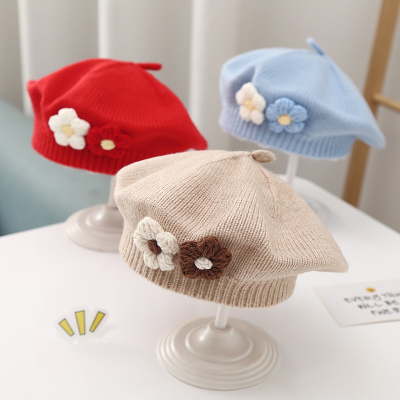 女宝宝帽子秋冬季婴儿针织贝雷帽可爱小花女童画家帽儿童毛线帽潮