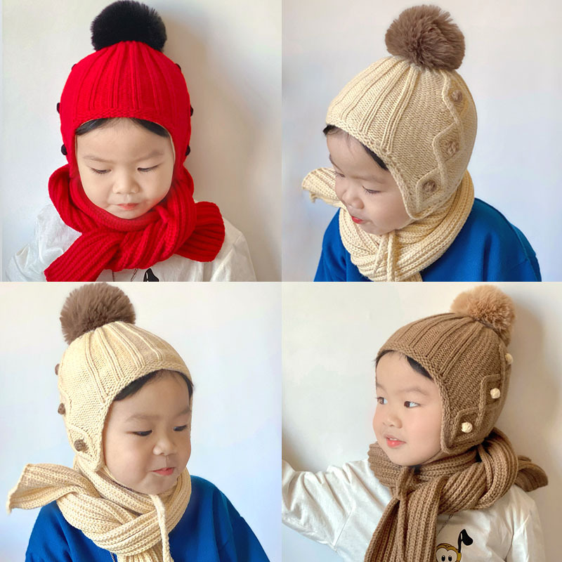 儿童帽子围巾两件套韩版宝宝套装保暖秋冬男女童婴儿针织帽冬季