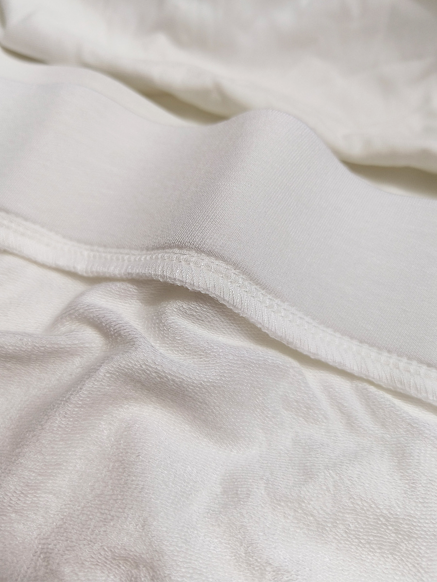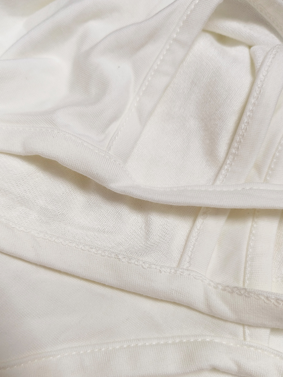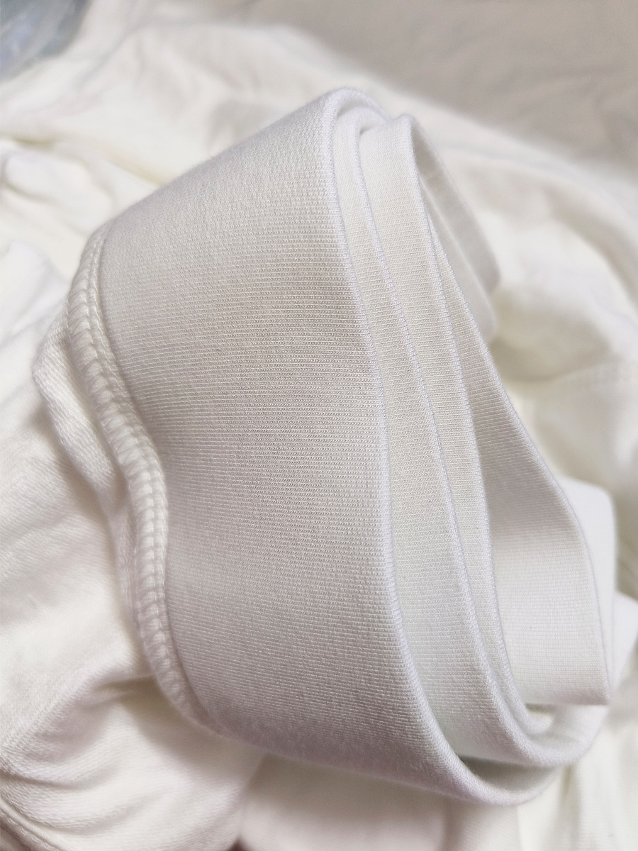 这款面料亲肤舒适度很高,弹力极大,面料的克重有250克,白色也不会透。