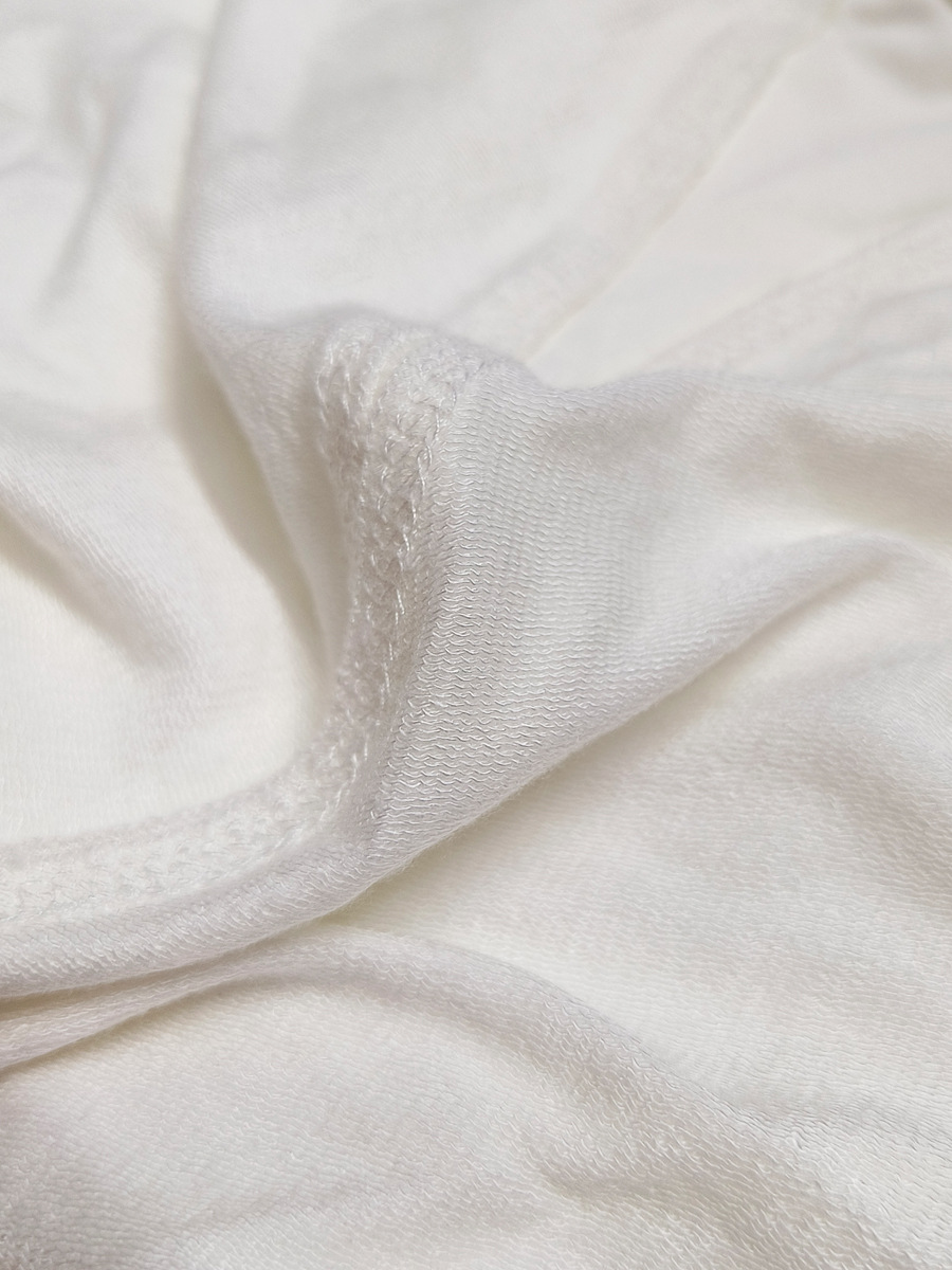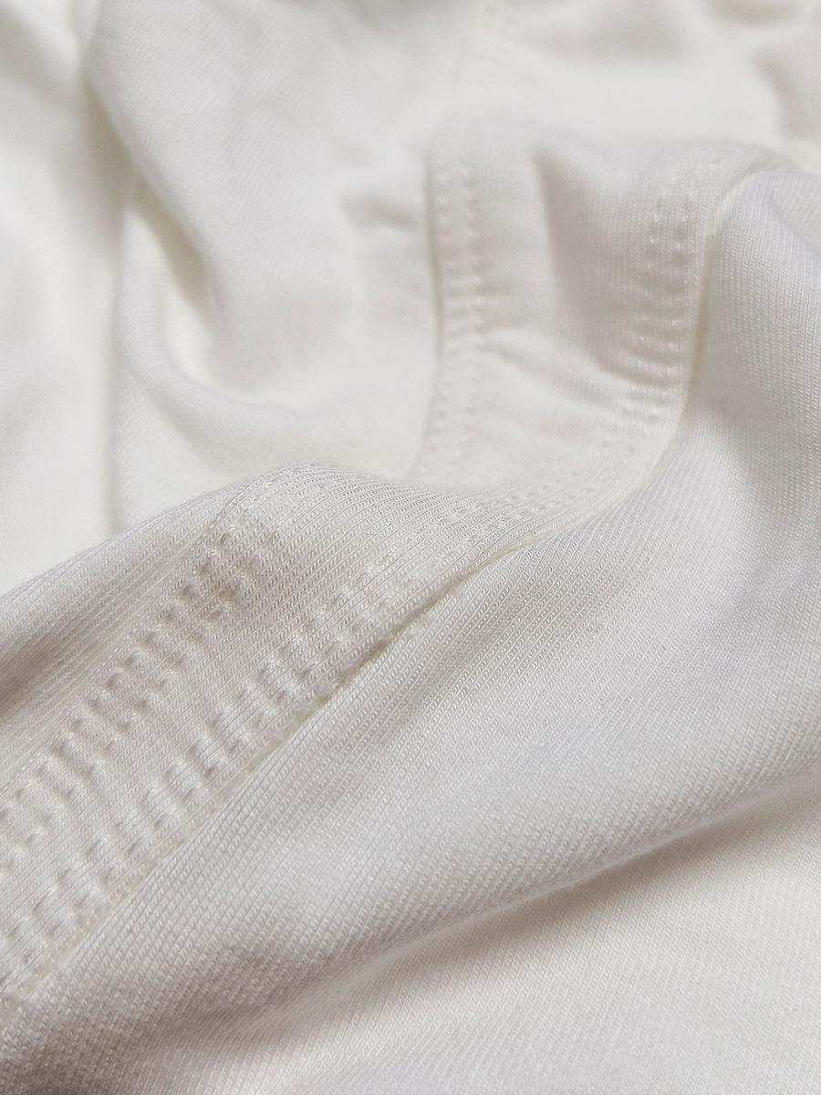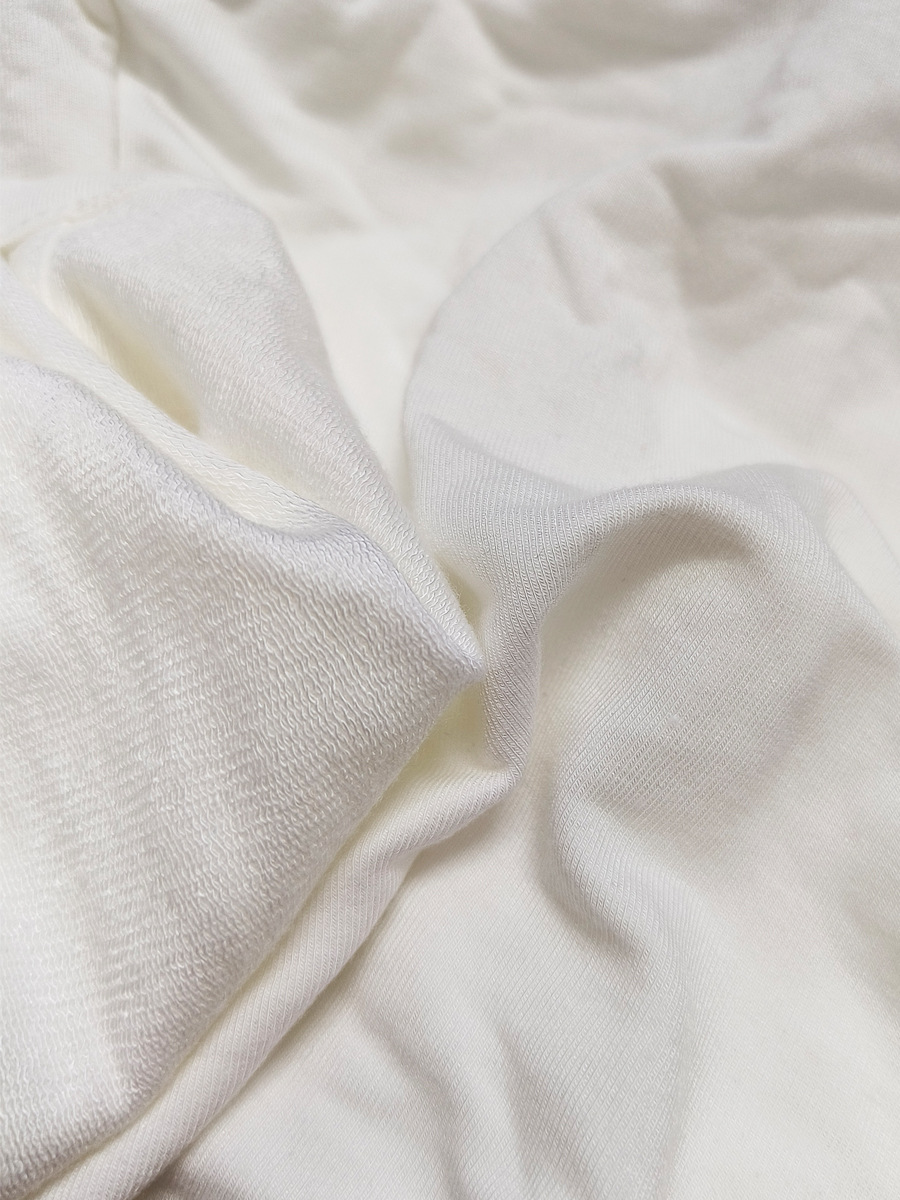 这款面料亲肤舒适度很高,弹力极大,面料的克重有250克,白色也不会透。