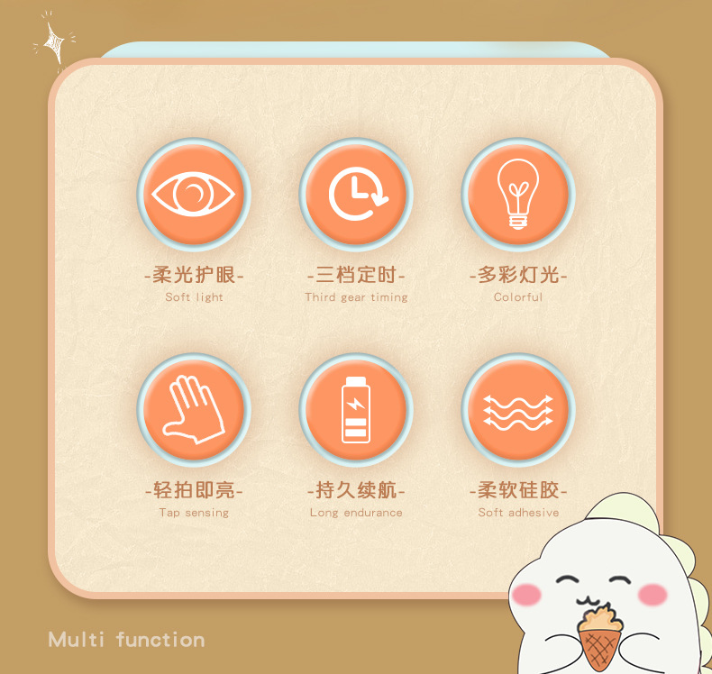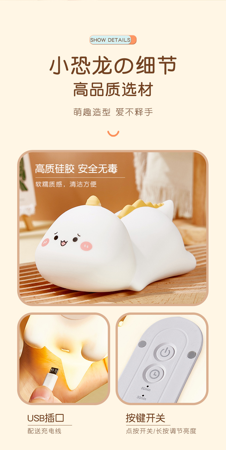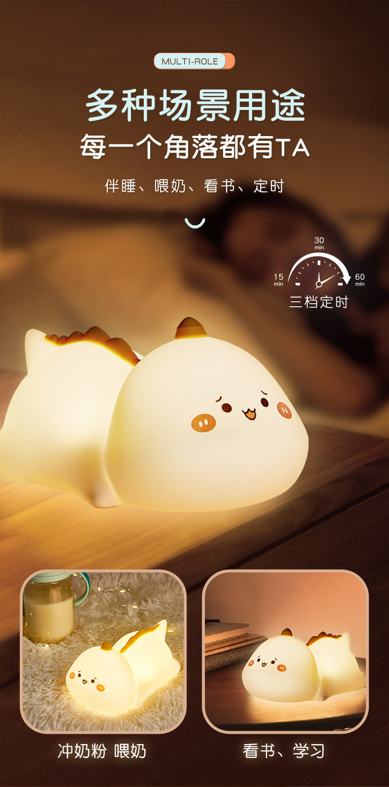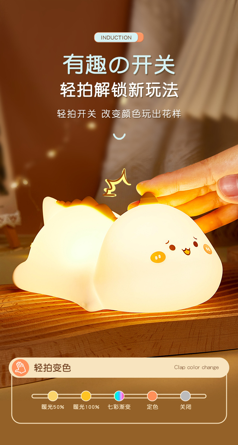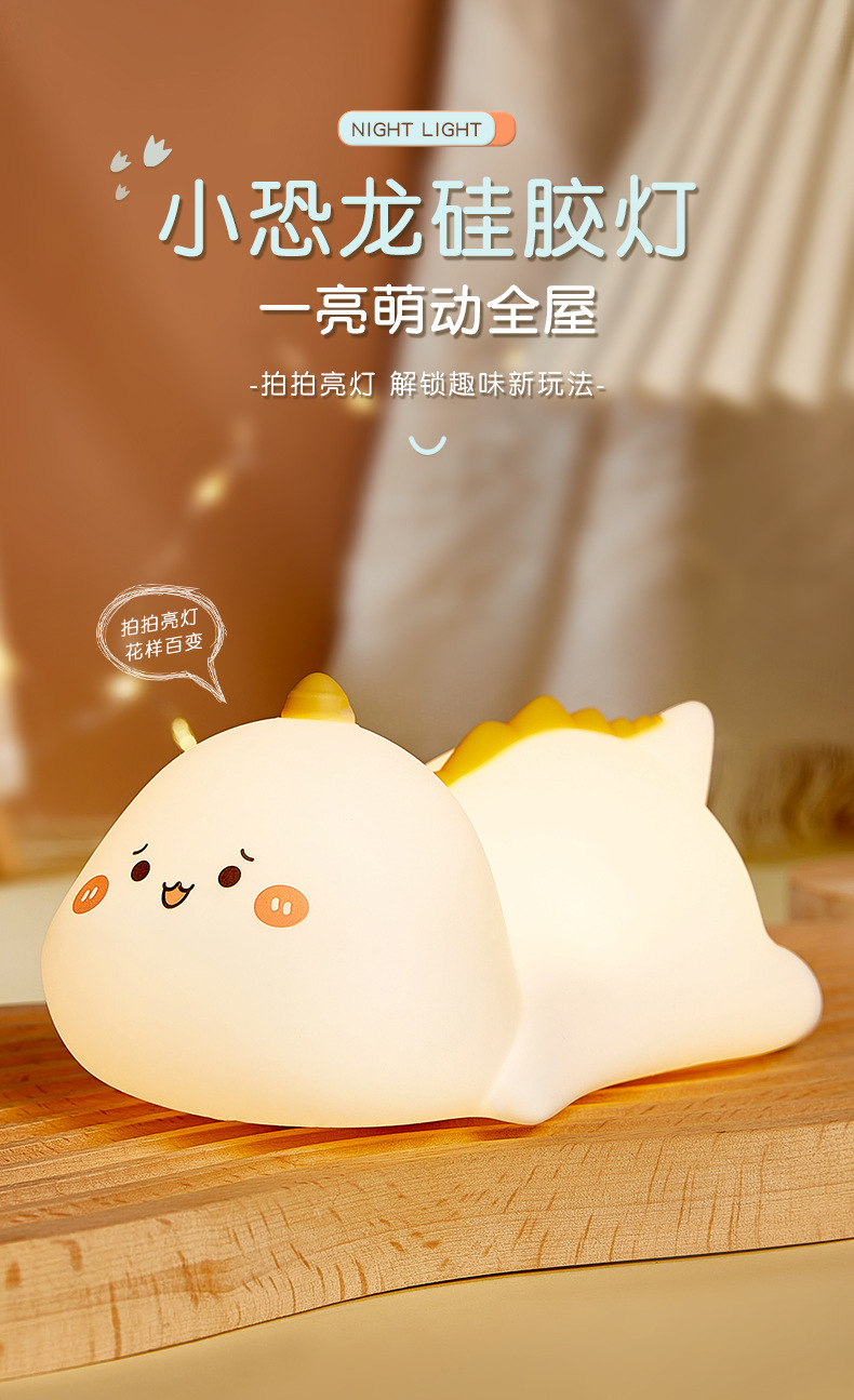 可爱小恐龙硅胶拍拍灯卡通玩具解压神器创意礼品摆件卧室床头灯