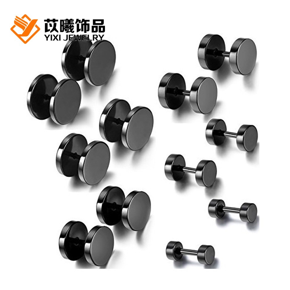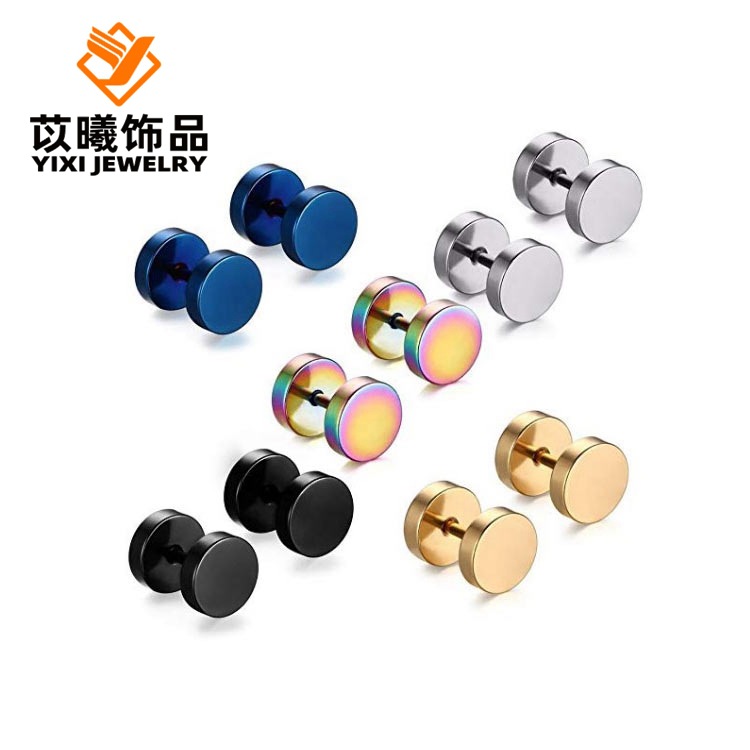韩版时尚男耳钉同款圆饼哑铃钛钢耳钉批发个性跨境ebay套装女耳饰