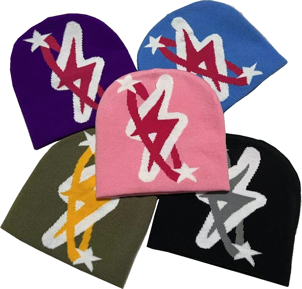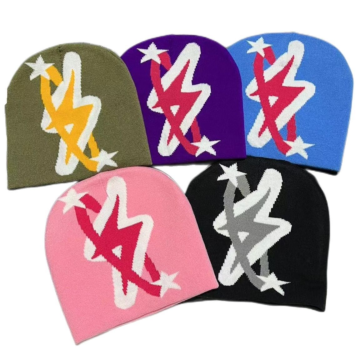23款秋冬跨境外贸套头帽欧美多色字母百搭冷帽男女成人毛线针织帽