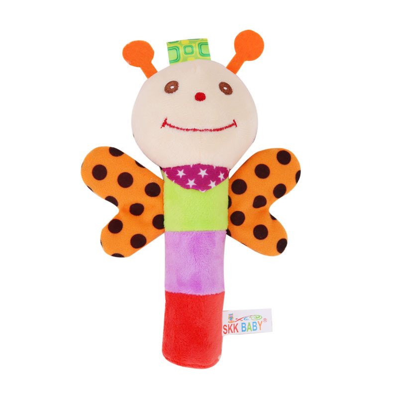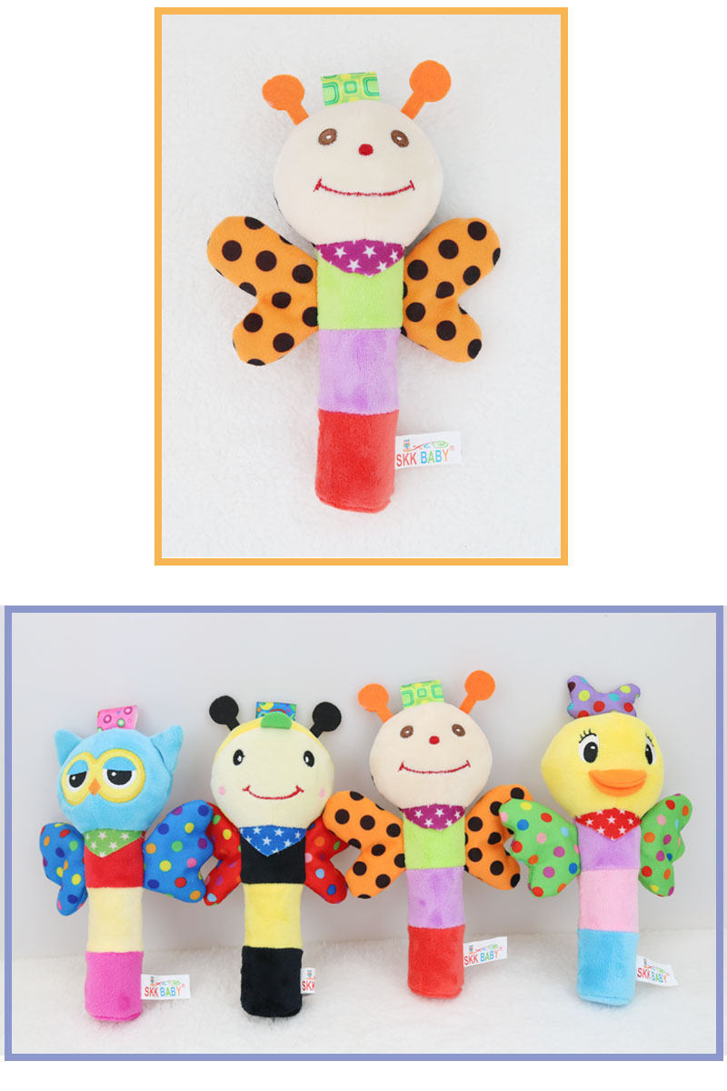 批发新生儿玩具0-1岁毛绒BB棒婴儿手抓动物 手摇铃