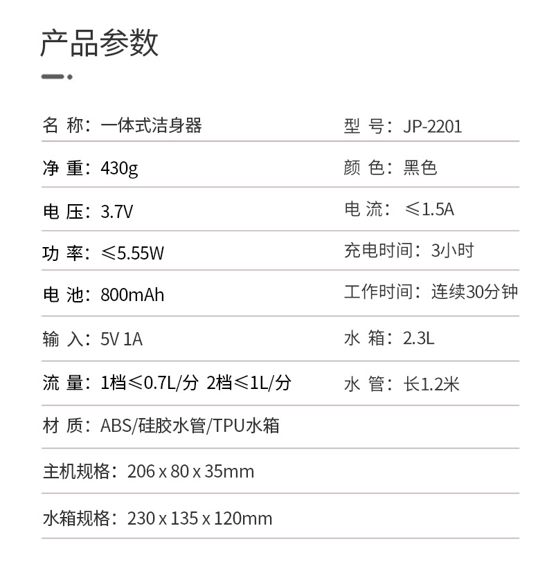 产品名称:一体式洁身器 2.3L
