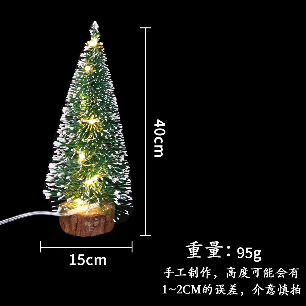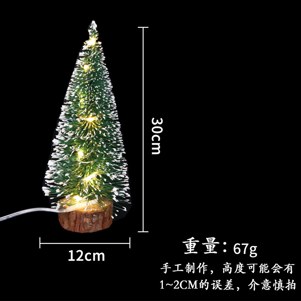 绿色雪松LED灯发光松针树圣诞装饰品桌面摆件礼物 迷你小圣诞树
