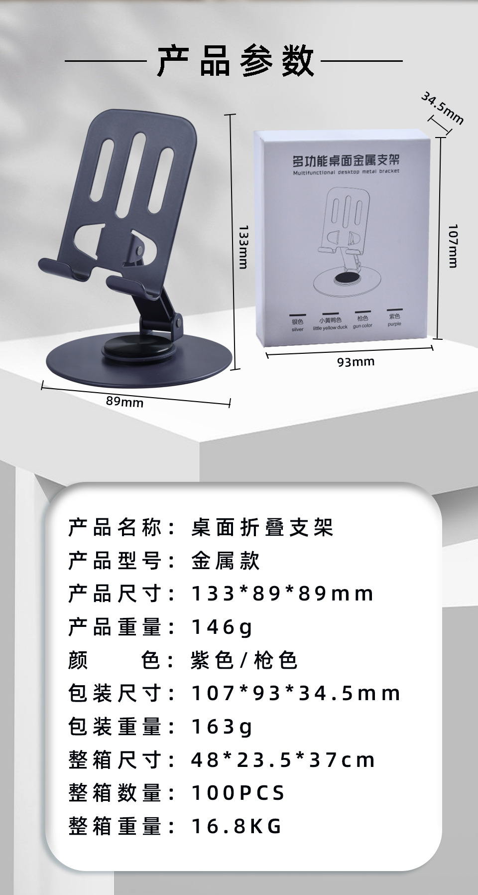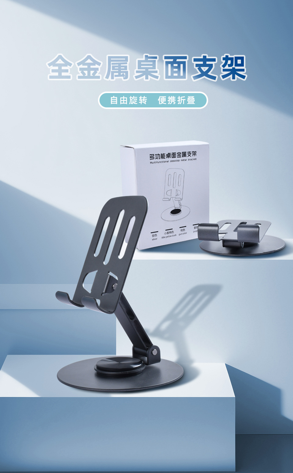 新款合金360度旋转桌面手机支架直播便携式折叠懒人平板手机支架