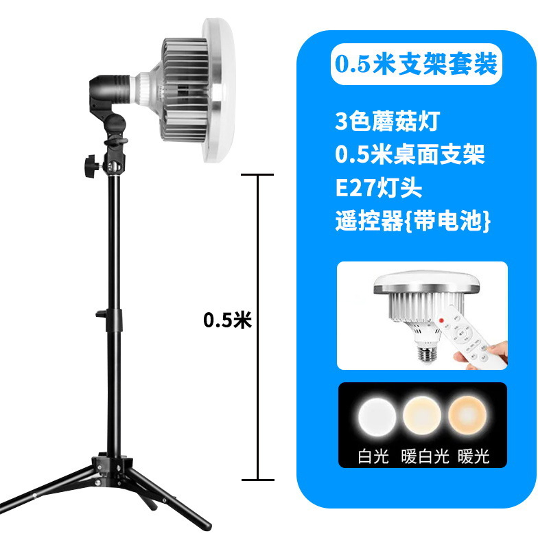 桌面直播美食珠宝美甲摄影补光灯蘑菇灯静物拍摄美颜支架三色遥控