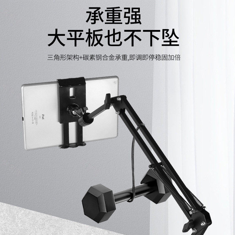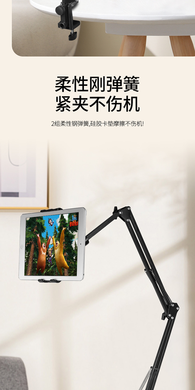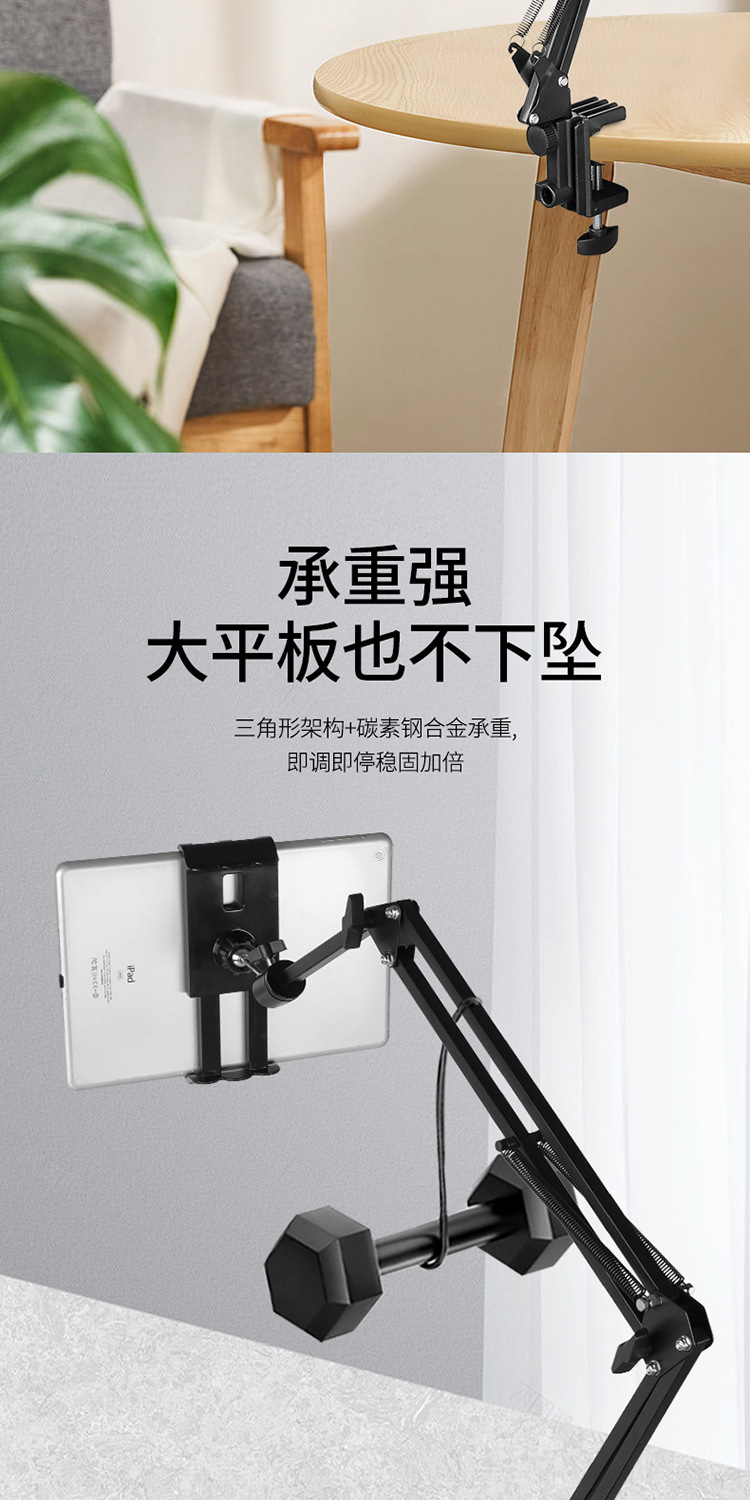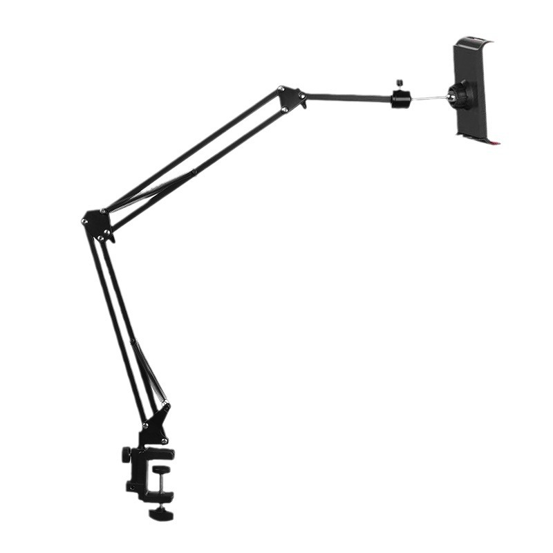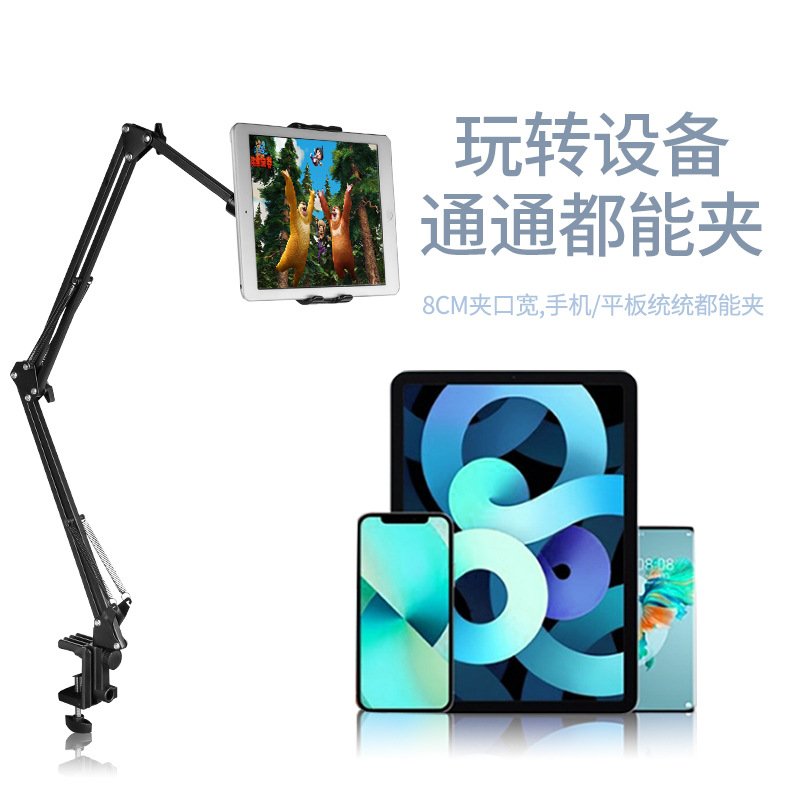 床头桌面夹式三节悬臂手机平板支架折叠调节金属懒人俯拍支架跨境