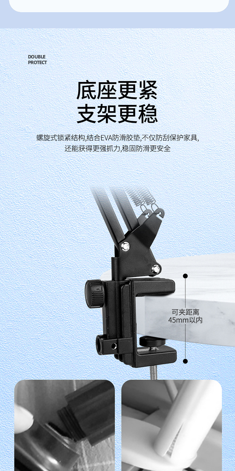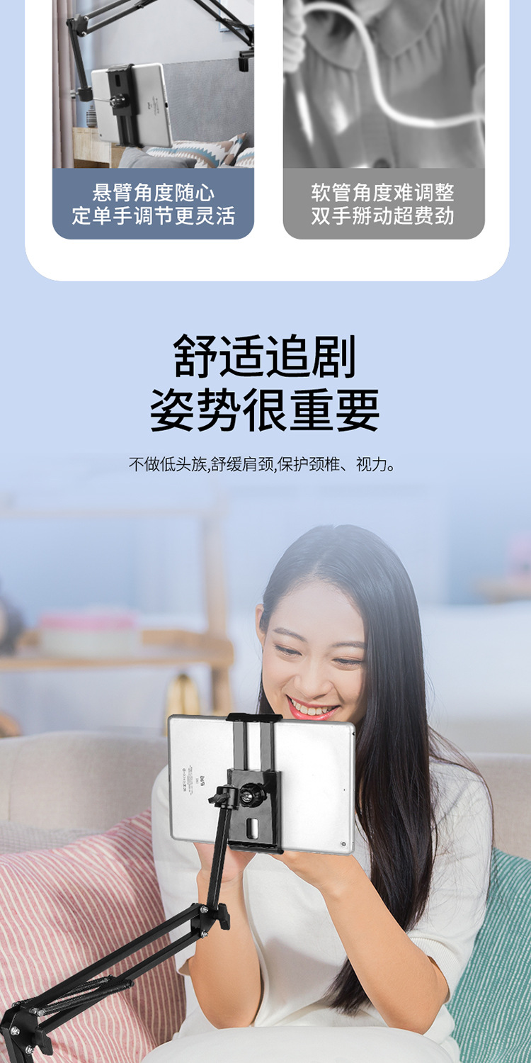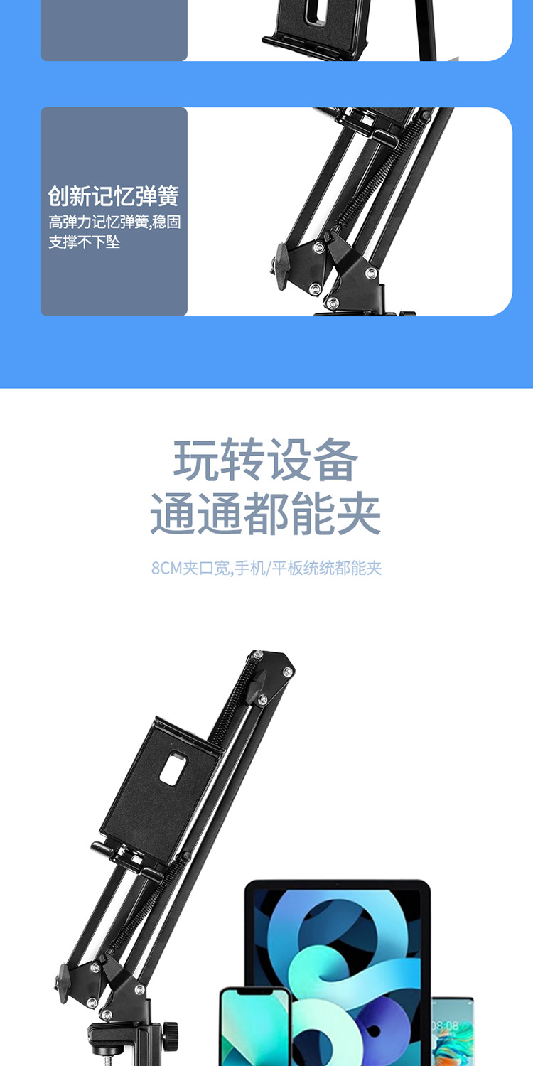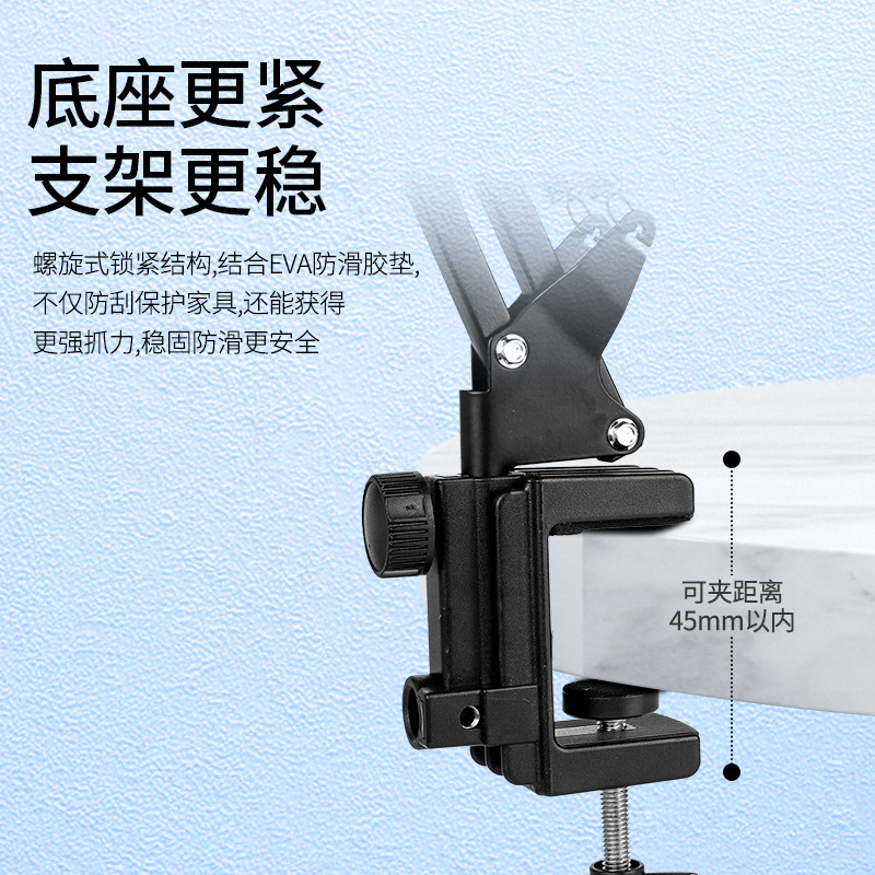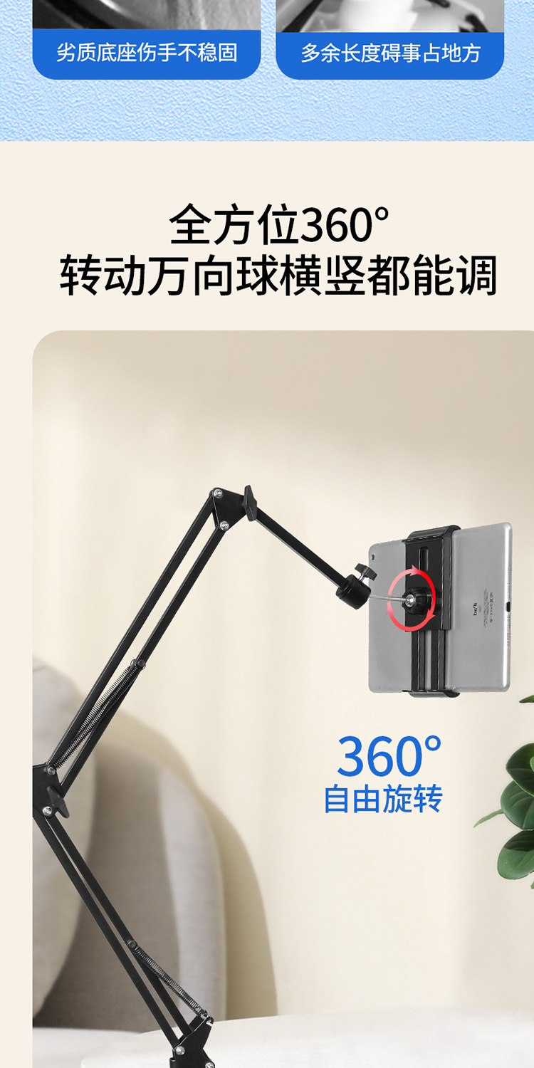 床头桌面夹式三节悬臂手机平板支架折叠调节金属懒人俯拍支架跨境