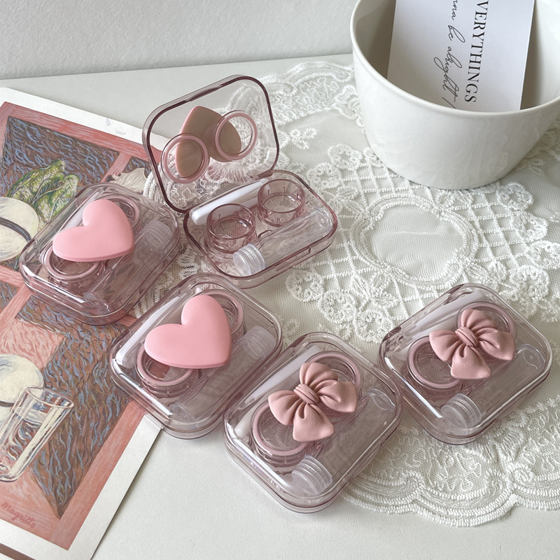ins樱花粉~透明隐形眼镜盒迷你简约一体伴侣盒美瞳双联盒免拧盖
