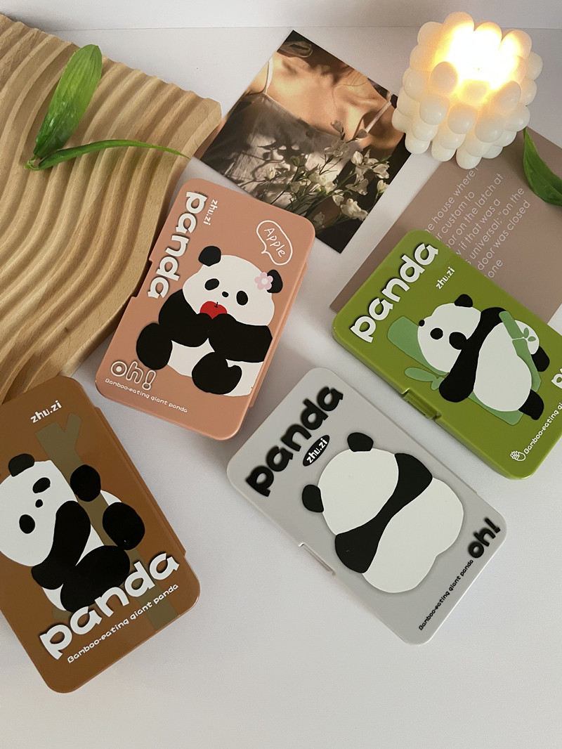 带镜子可爱熊猫~便携隐形眼镜盒子伴侣护理盒美瞳盒as957六付装