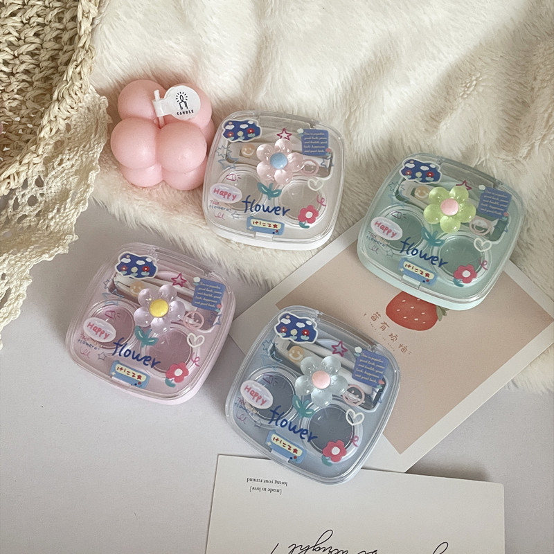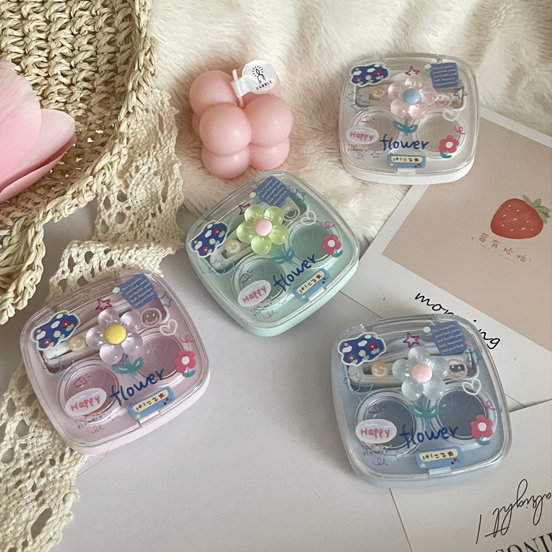 隐形眼镜盒便携透明迷你简约一体伴侣盒美瞳双联盒无需拧盖as2306