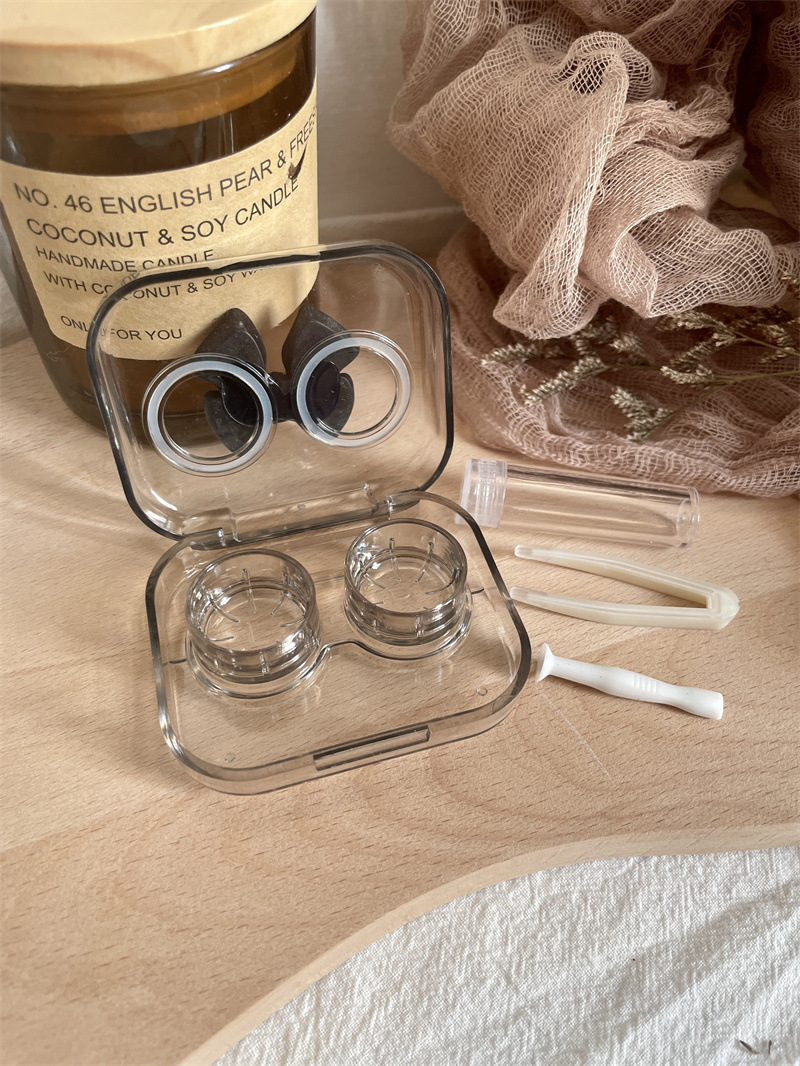 暗黑辣妹~隐形眼镜盒迷你一体美瞳美瞳盒无需拧盖蝴蝶结as762