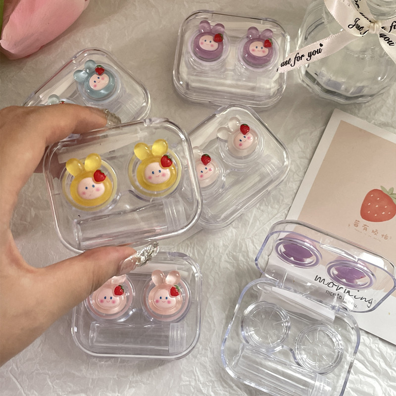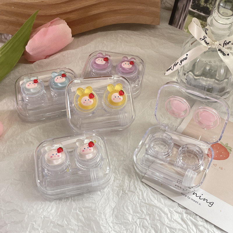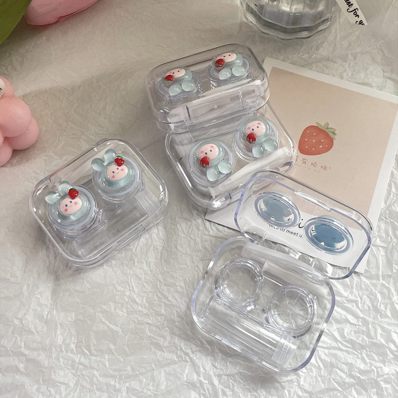 隐形眼镜盒便携透明迷你简约一体美瞳双联盒无需拧盖as9801兔子