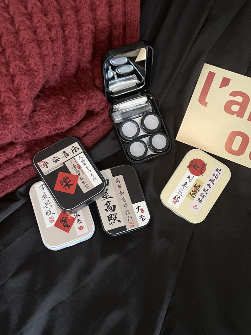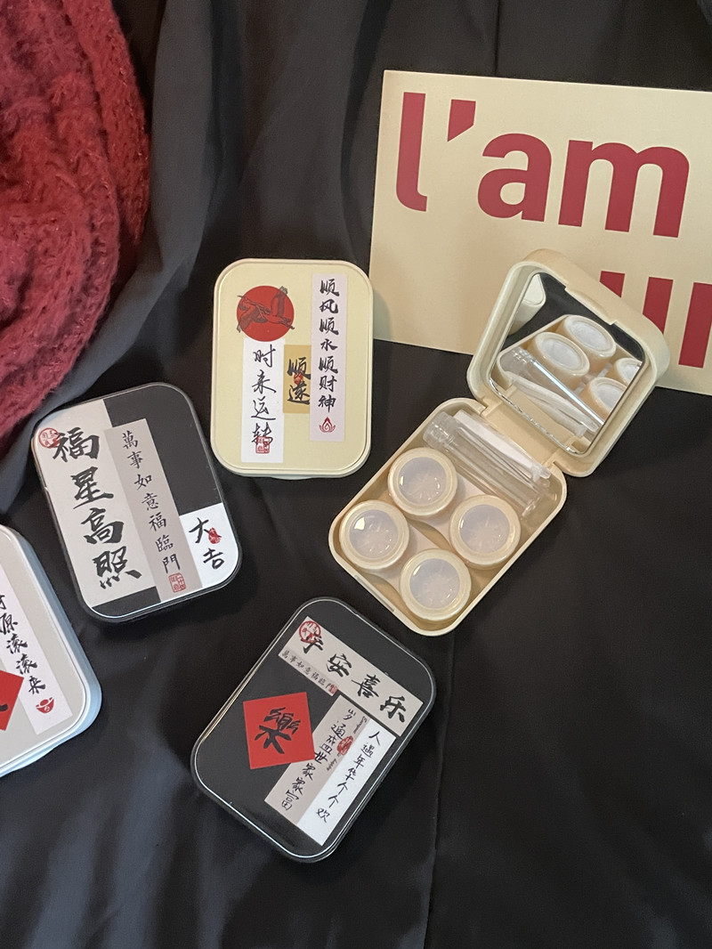 像鱼创意文字小众便携美瞳盒隐形眼镜伴侣盒护理盒子两付装as667